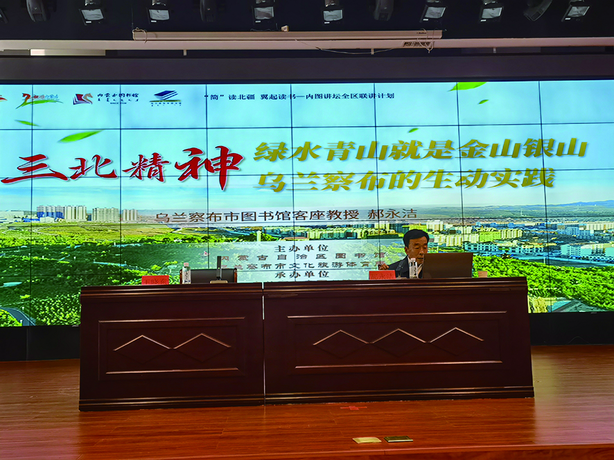 本报讯(实习记者 张玥)11月11日,由内蒙古自治区图书馆、乌兰察布市文化旅游体育局主办,乌兰察布市图书馆承办,乌兰察布市博物馆协办的“绿水青山就是金山银山——‘三北精神’乌兰察布生动实践”主题讲座在乌兰察布市博物馆二楼报告厅拉开帷幕。本次讲座带领观众一起解读家乡生态变迁、感悟“三北精神”。