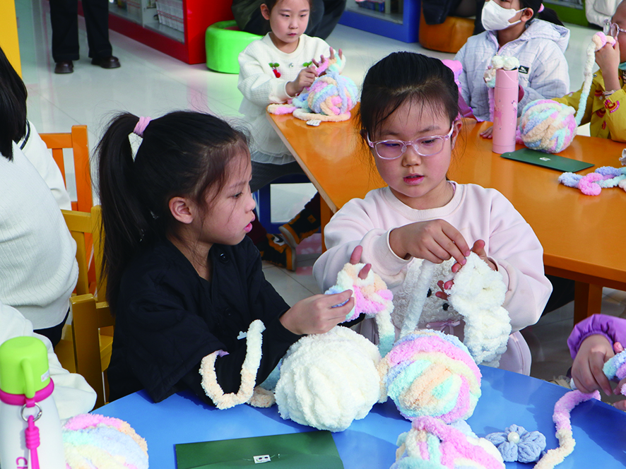 ●小朋友们互相学习织围巾 本报记者 马佳敏 摄