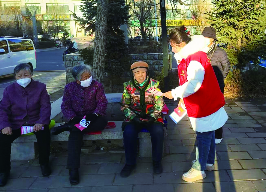 ●工作人员向居民解读《妇女权益保障法》 本报记者 朱旭敏 摄
