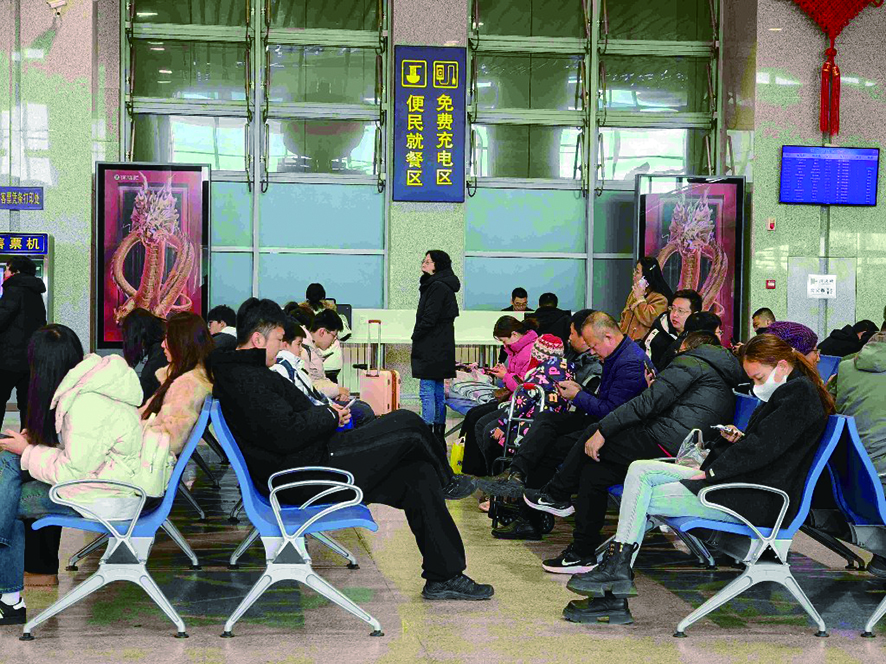 旅客在车站大厅候车