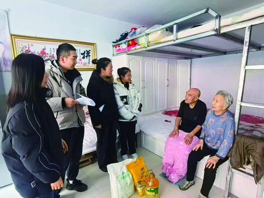 在虎山街道学府小区,75岁的张秀荣老人接过慰问组送来的粮油和春联,眼含泪光:“我患有皮肤病,常年离不开药,孩子们都靠打工为生,收入不稳定,家里的日子全靠低保支撑。每年春节前你们都来,不光送来吃的用的,还有你们的爱心。”