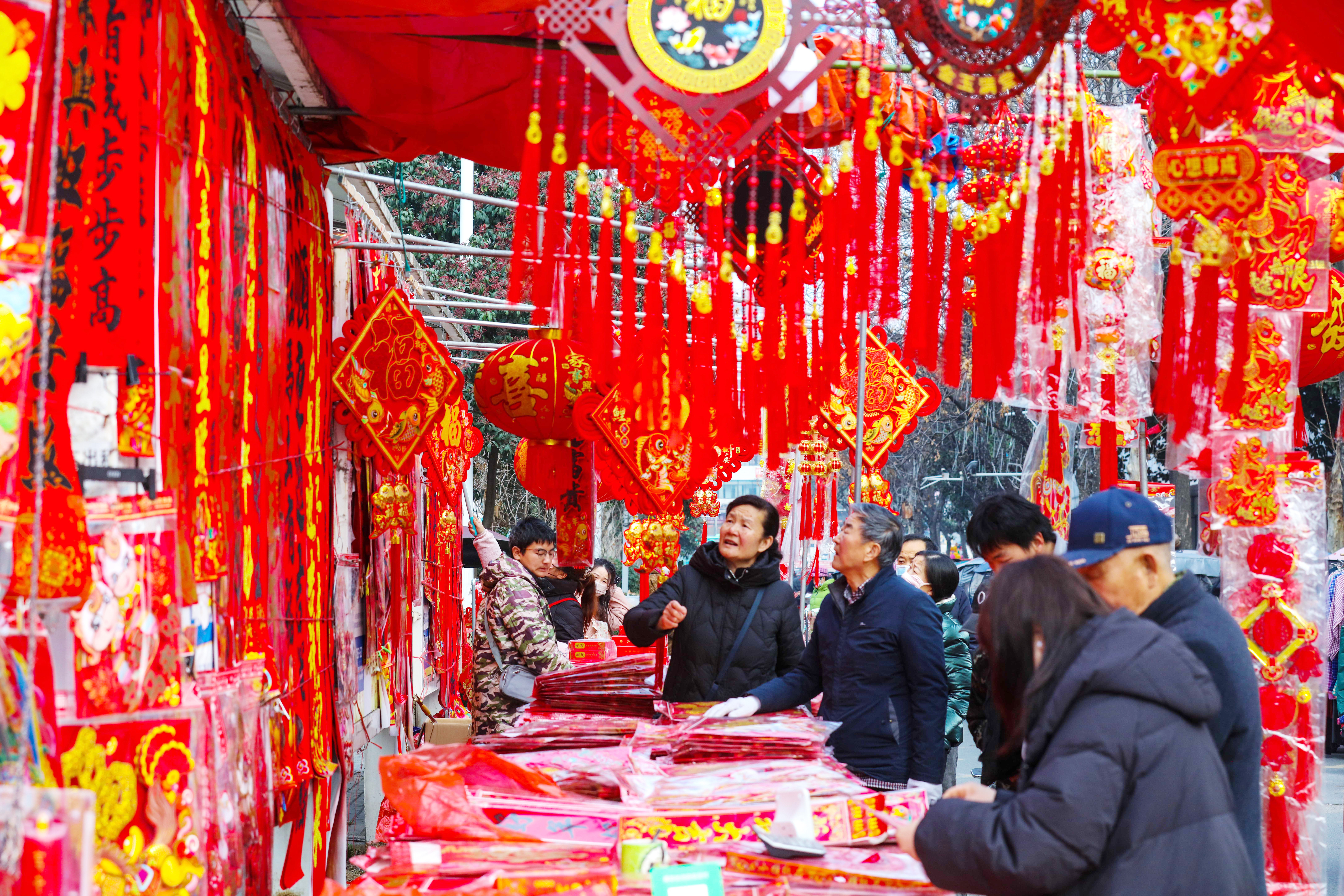 新春将至,年味渐浓。各地举办年货大集、写福字春联等活动,人们选购鲜花、中国结等饰物,迎接新春。新华社发(谢万柏 摄)