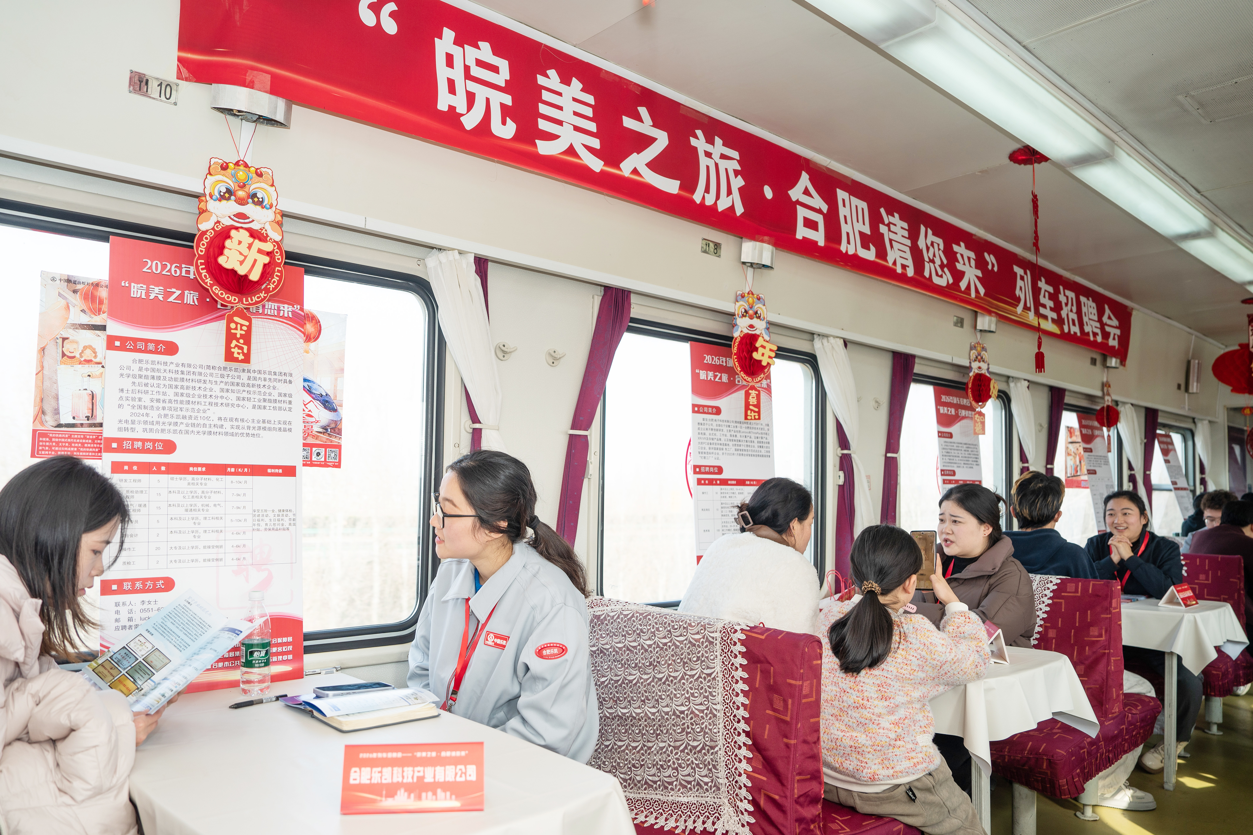 当日,由中国铁路上海局集团有限公司合肥客运段联合合肥市人力资源与社会保障局举办的列车招聘会在上海站开往阜阳站的K8362次列车上举行,为返乡游子架起就业对接的桥梁。