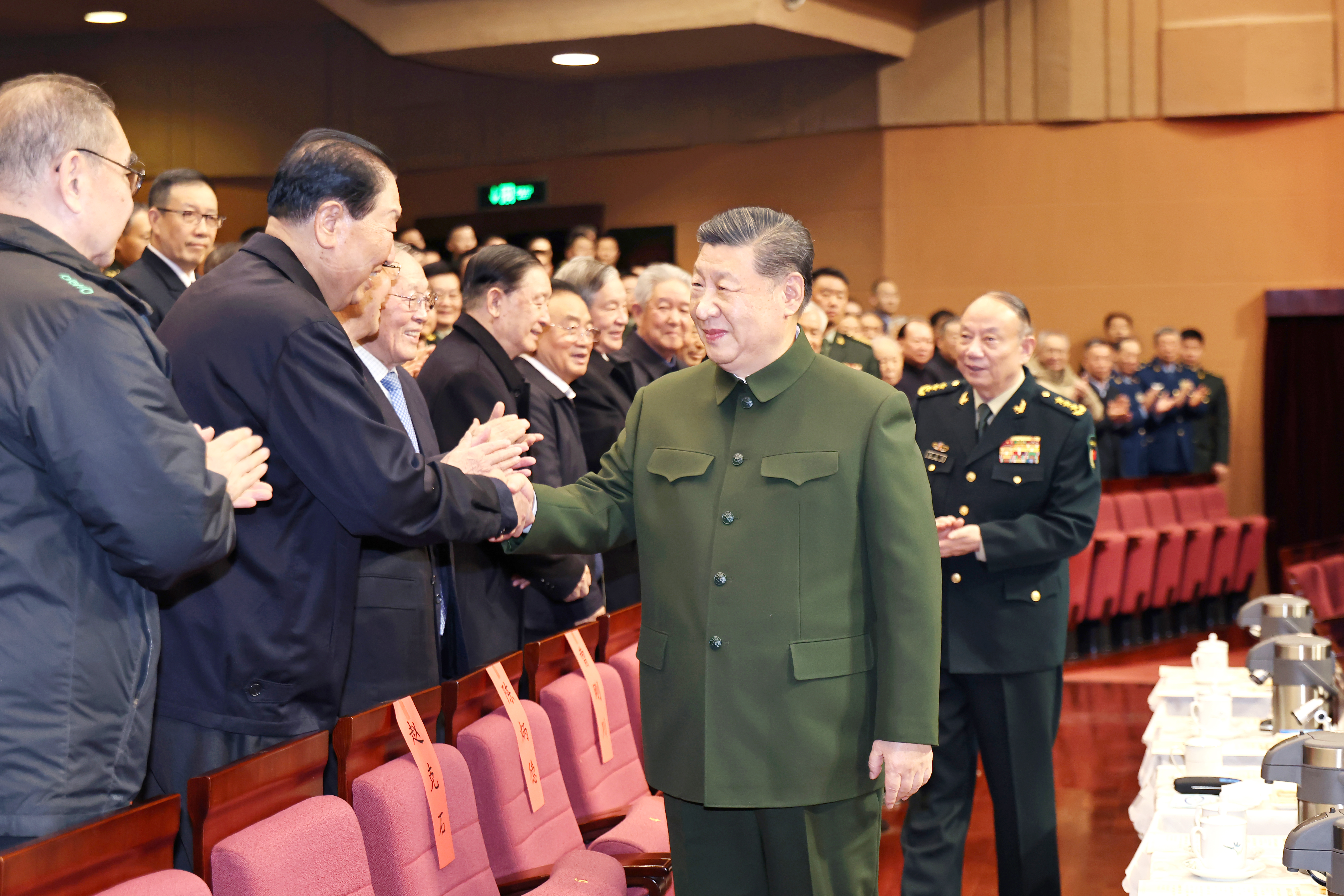 下午4时许,习近平来到老同志中间,全场响起热烈掌声。习近平同大家亲切交流、互致问候,关切询问他们的身体和生活情况,共同回顾过去一年党、国家和军队事业走过的不平凡历程、取得的重大成就。老同志们一致表示,要更加紧密地团结在以习近平同志为核心的党中央周围,坚持以习近平新时代中国特色社会主义思想为指导,深入贯彻习近平强军思想,深刻领悟“两个确立”的决定性意义,坚决做到“两个维护”,贯彻军委主席负责制,弘扬光荣传统、永葆政治本色,坚定信念、勇毅前行,为如期实现建军一百年奋斗目标、高质量推进国防和军队现代化作贡献。