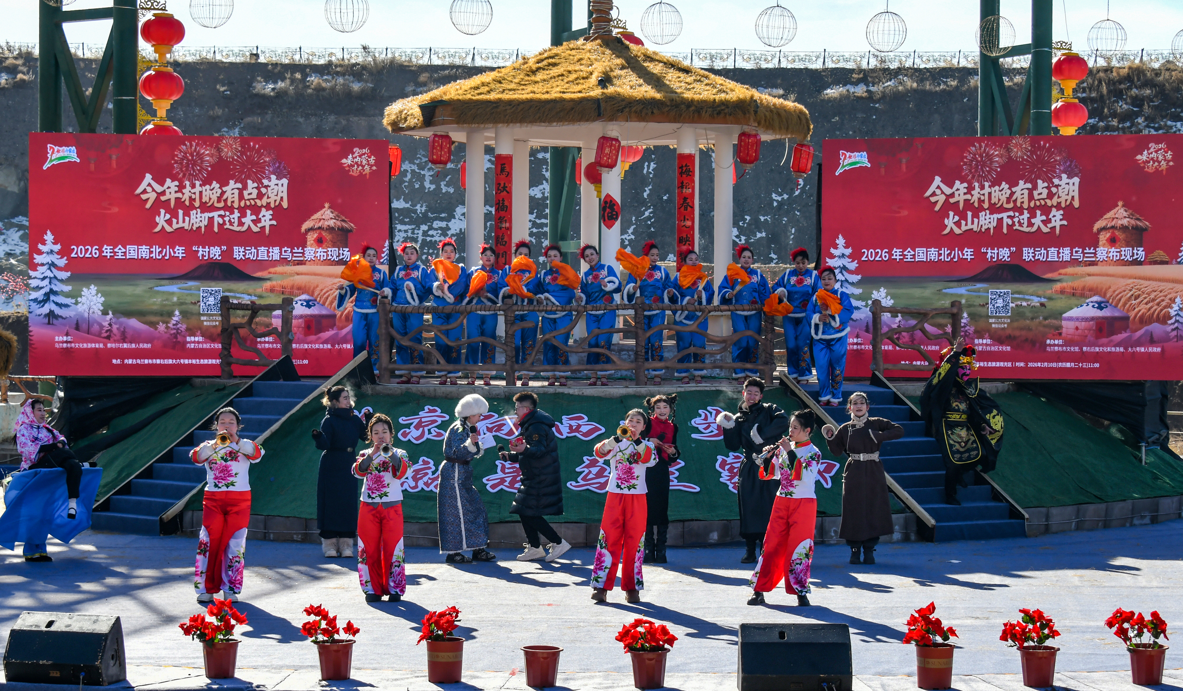 此次“村晚”由市文旅体局、察右后旗人民政府联合主办,自治区文化馆指导,也是《我的“村晚”我的年》2026年全国南北小年“村晚”联动直播乌兰察布站的活动现场。本次“村晚”以“农民演、农民乐、农民享”为核心,通过舞台表演、非遗展销、民俗体验三大板块,为现场各族人民群众献上一场浸润乡土气息、洋溢时代风貌的年味盛宴。同时,活动也通过国家公共文化云和央视频全程播出,让八方宾客感受北方城镇别样的年俗和风情。