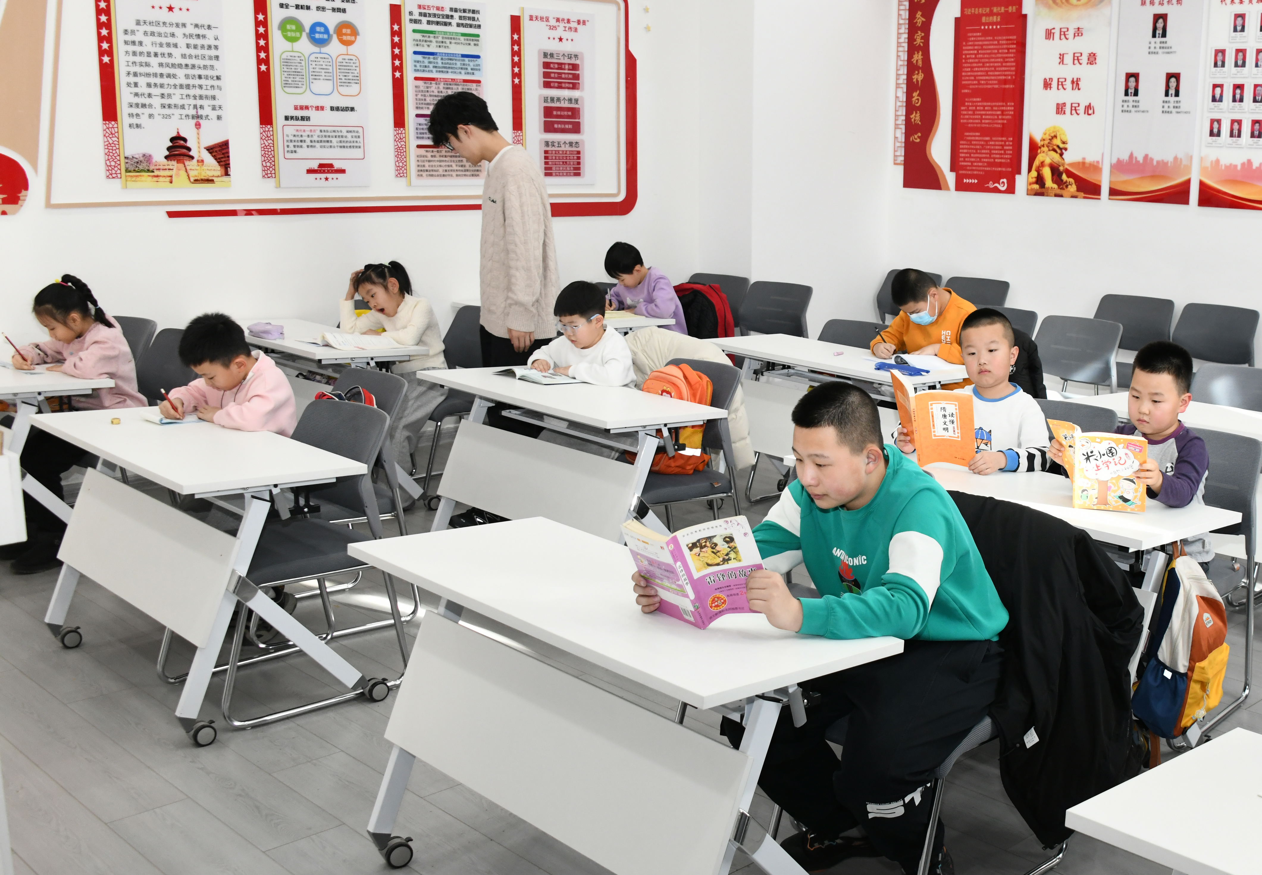 社区公益课堂内大学生志愿者正为孩子们进行作业辅导。本报记者 张可心 摄