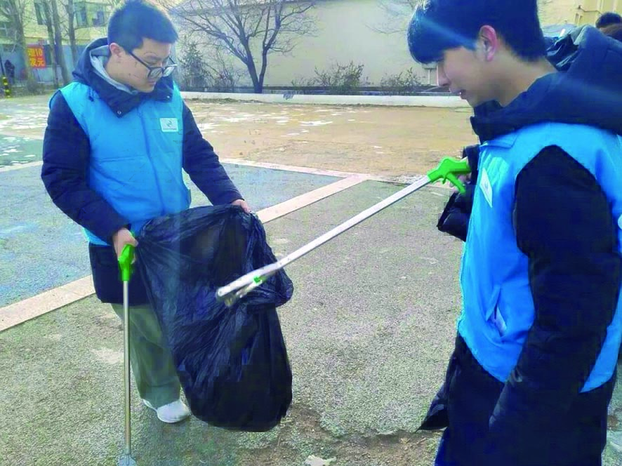 ●志愿者清理小区垃圾 本报记者 马佳敏 摄