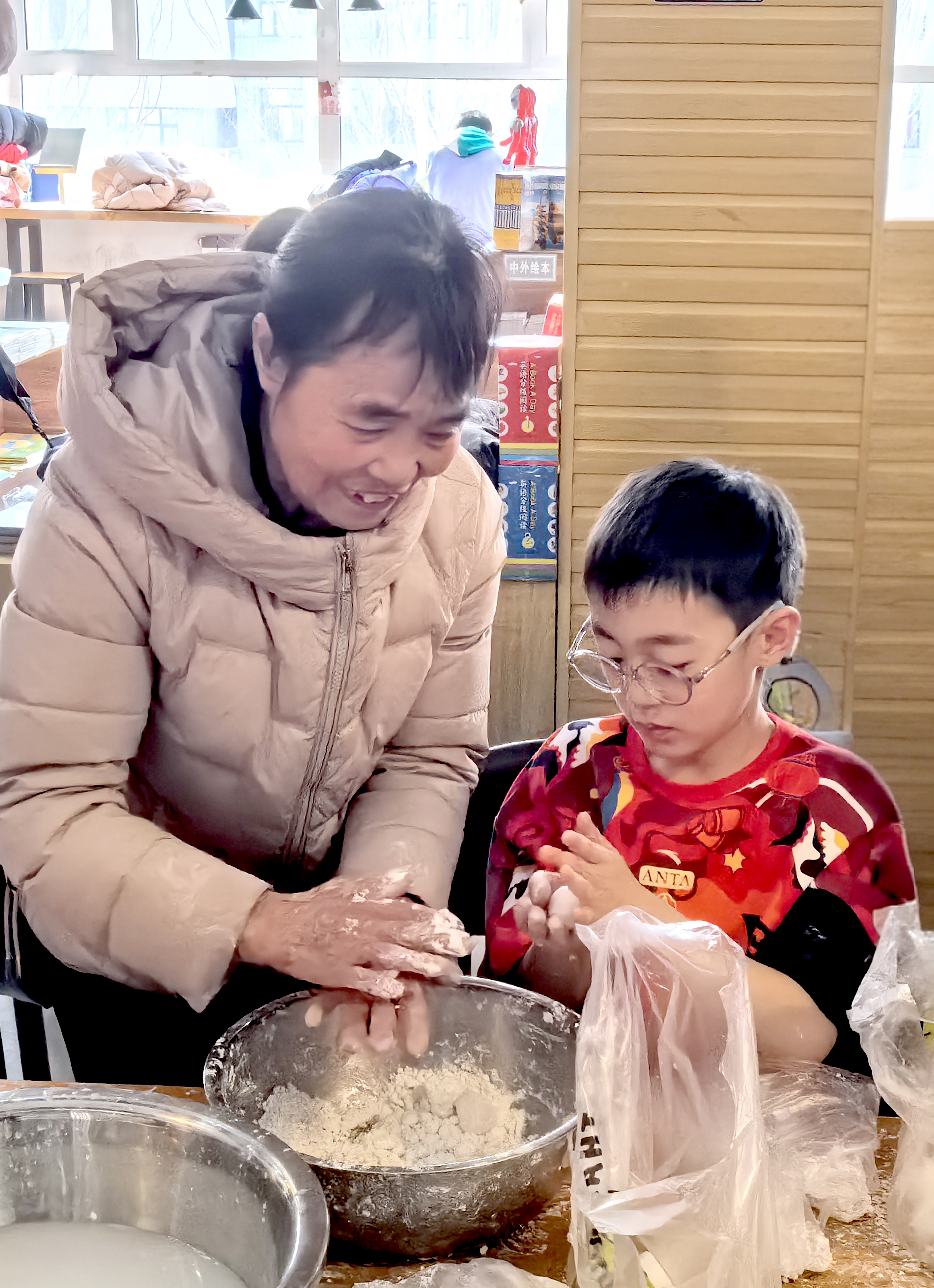 “平时工作忙,很少有机会和孩子一起动手做东西。今天带孩子来书店,既能看书,又能体验传统手艺,感觉特别有意义。”家长杜颖边教孩子搓元宵边笑着对记者说。