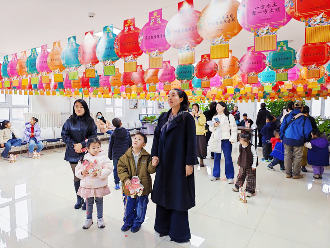 上午9时30分,活动正式拉开帷幕。花灯制作区,暖意融融、气氛热烈。在工作人员的耐心指导下,家长与孩子们分工协作、默契配合,裁纸、拼接、粘贴、装饰,一步步将普通的材料精心制作成一盏盏造型别致、妙趣横生的花灯。这些花灯各具特色,有的绘着可爱的生肖图案,有的缀满五彩斑斓的流苏,有的融入了创意设计……每一盏花灯都承载着浓浓的亲子温情,也寄托着大家对节日的美好期许。