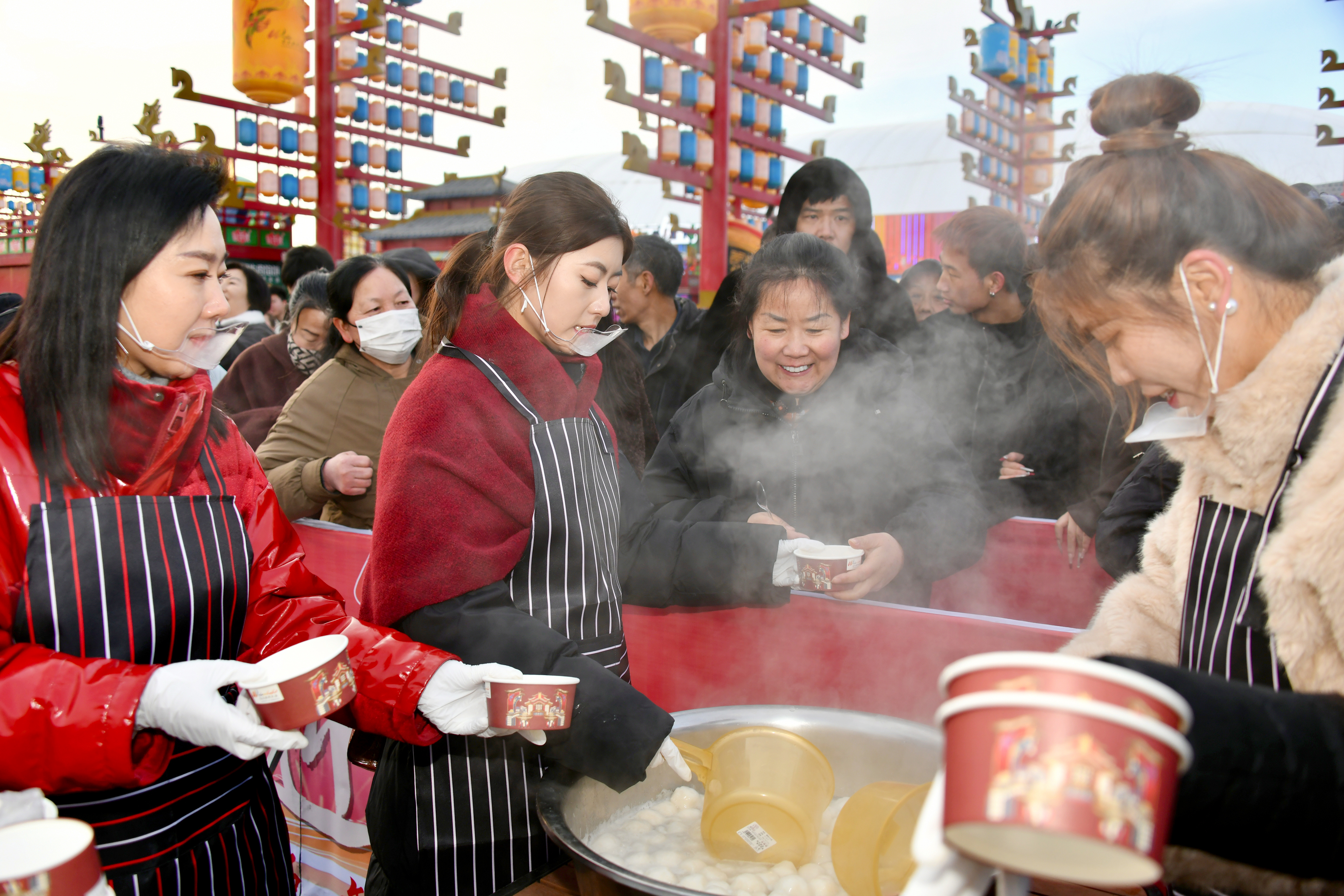 下午5时30分左右,街区东南停车场一口直径3米的大锅准时开火,拉开了活动的序幕。不一会儿,偌大的铁锅冒着白气,火龙果味、豆沙味、黑芝麻味等多种口味的元宵在锅中翻滚,飘香四溢,众多游客循味而来,排起长队等候。一碗碗热气腾腾的元宵递到游客手中,人群中不时传来“小心烫”“这味道真地道”的欢笑声,暖意伴着笑语在暮色中流淌,为这个元宵节添上了一抹温情的底色。