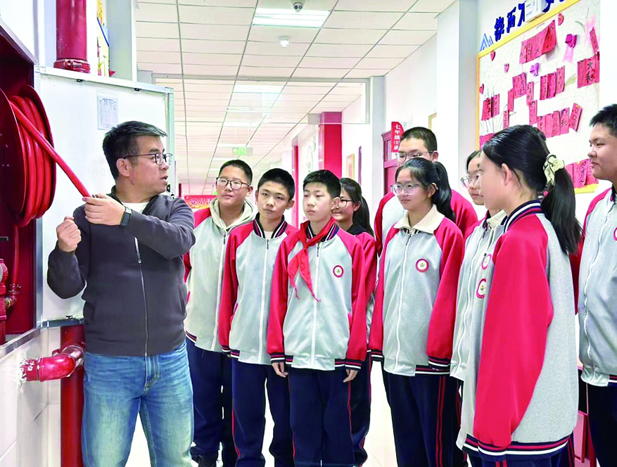 集宁区第五中学则为学生发放了“北疆小雷锋”助学作业本,并开展了“安全同行 守护未来”主题活动,组织学生观看交通安全、消防安全等方面的直播课程,班主任现场示范楼道消火栓内消防器材的使用方法,同学们认真观摩学习,将理论转化为实操技能。之后,全体学生高举右拳庄严宣誓,承诺遵守安全规则、珍爱生命,铿锵誓言回荡教室。
