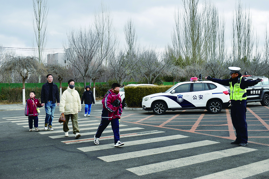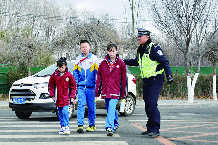 ●交警安全护送孩子过马路 本报记者 徐楠 摄