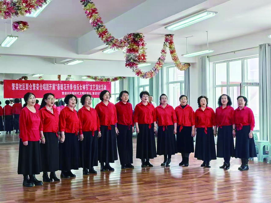 同日,前进路街道繁荣社区内则是歌声飞扬、乐声阵阵。妇女节活动在经典红歌《南湖的船党的摇篮》《我和我的祖国》的悠扬旋律中拉开帷幕,参演的女性队员们手持民族乐器,精神饱满、倾情演奏,用传统音乐的独特魅力表达对祖国的热爱和对美好生活的向往。现场观众掌声雷动,大家纷纷拿出手机记录下精彩瞬间。“能在这个属于我们的节日里,站在舞台上展现风采,给邻里们带来欢乐,我觉得特别有意义!”参演的王女士激动地表示。这场视听盛宴不仅点燃了现场气氛,更凝聚了社区邻里情,展现了新时代女性积极向上的精神面貌。