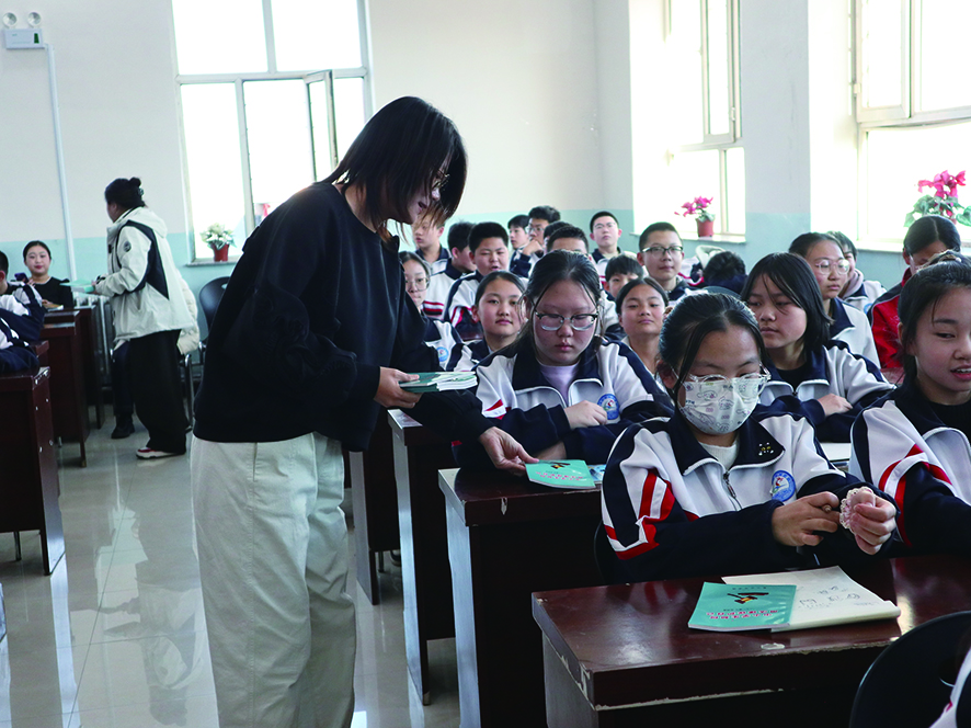 ●工作人员为同学们发放法治教育书籍本报记者 马佳敏 摄