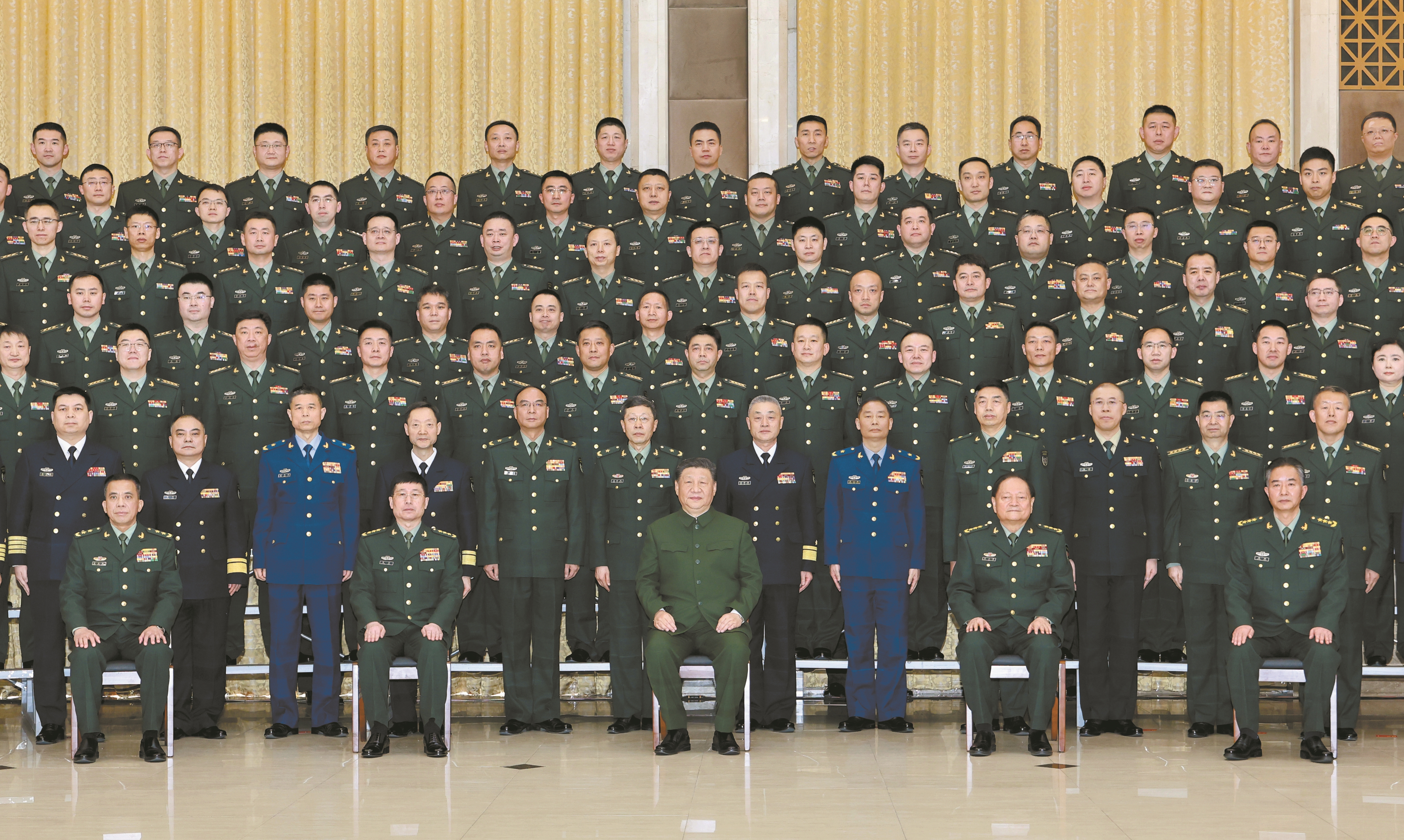 一月二十四日,中共中央总书记、国家主席、中央军委主席习近平到北部战区机关视察慰问,通过视频看望基层官兵,检查部队战备值班和执行任务情况,代表党中央和中央军委,向全体人民解放军指战员、武警部队官兵、军队文职人员、预备役人员和民兵致以诚挚问候和新春祝福。这是习近平同北部战区官兵代表合影留念。 新华社记者 李 刚摄