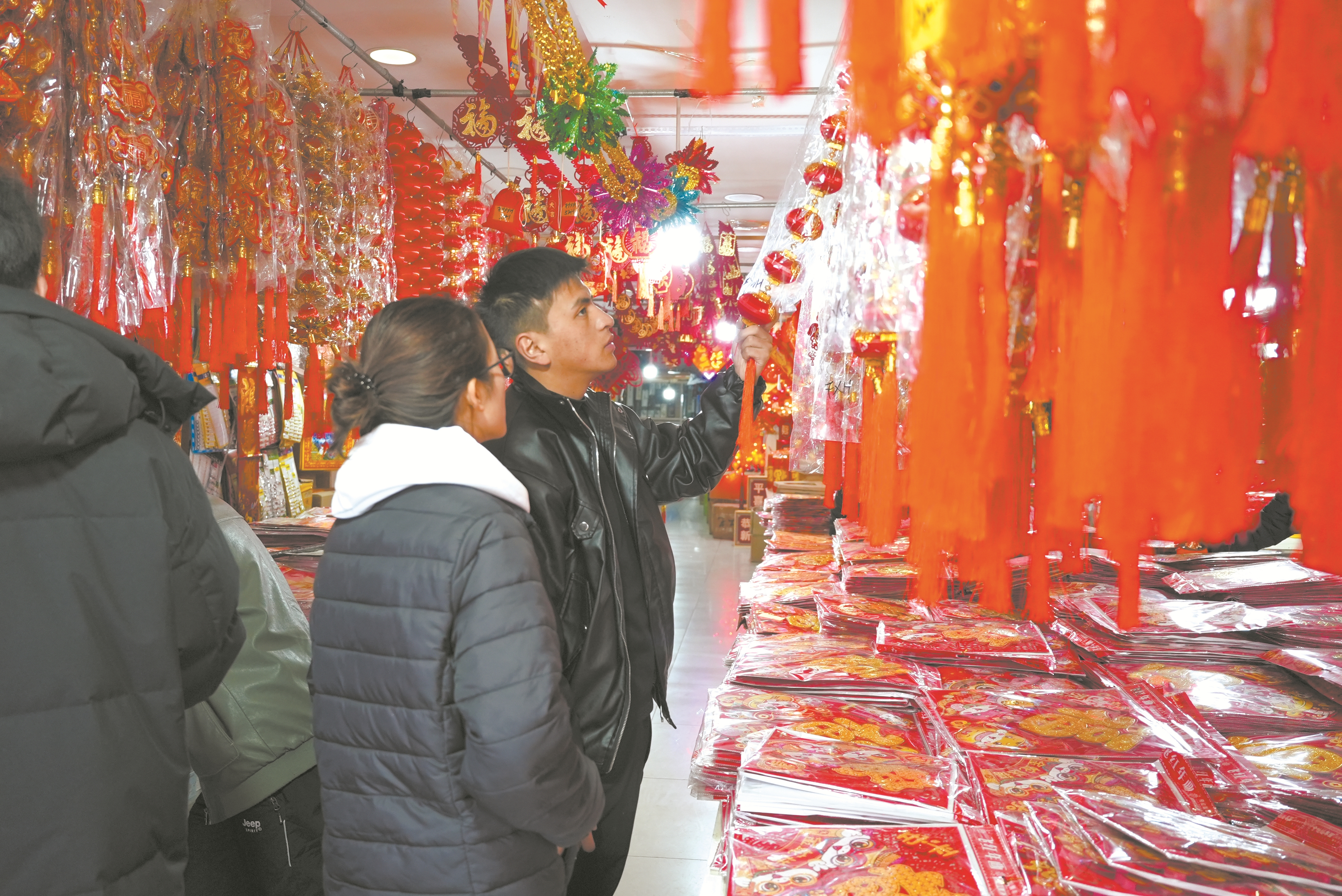 爆竹声中一岁除。在位于色拉路的城北烟花爆竹零售店里,各式各样的烟花爆竹引来顾客或驻足挑选,或仔细甄别品类,每个人的脸上都洋溢着喜悦和期待。
