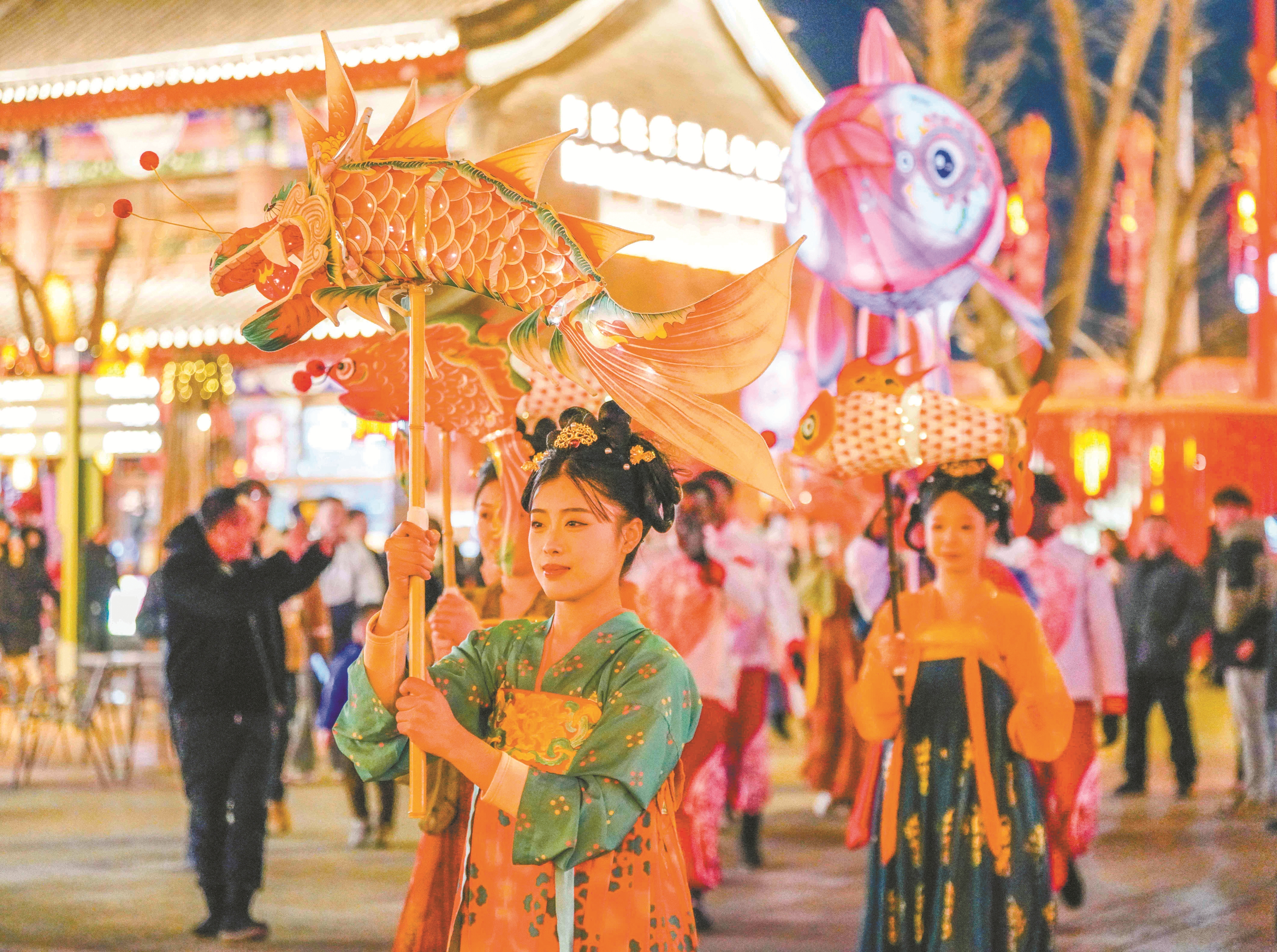 ↓这是1月26日,人们在河北省唐山市丰南区河头老街景区观看表演。 (新华社发)