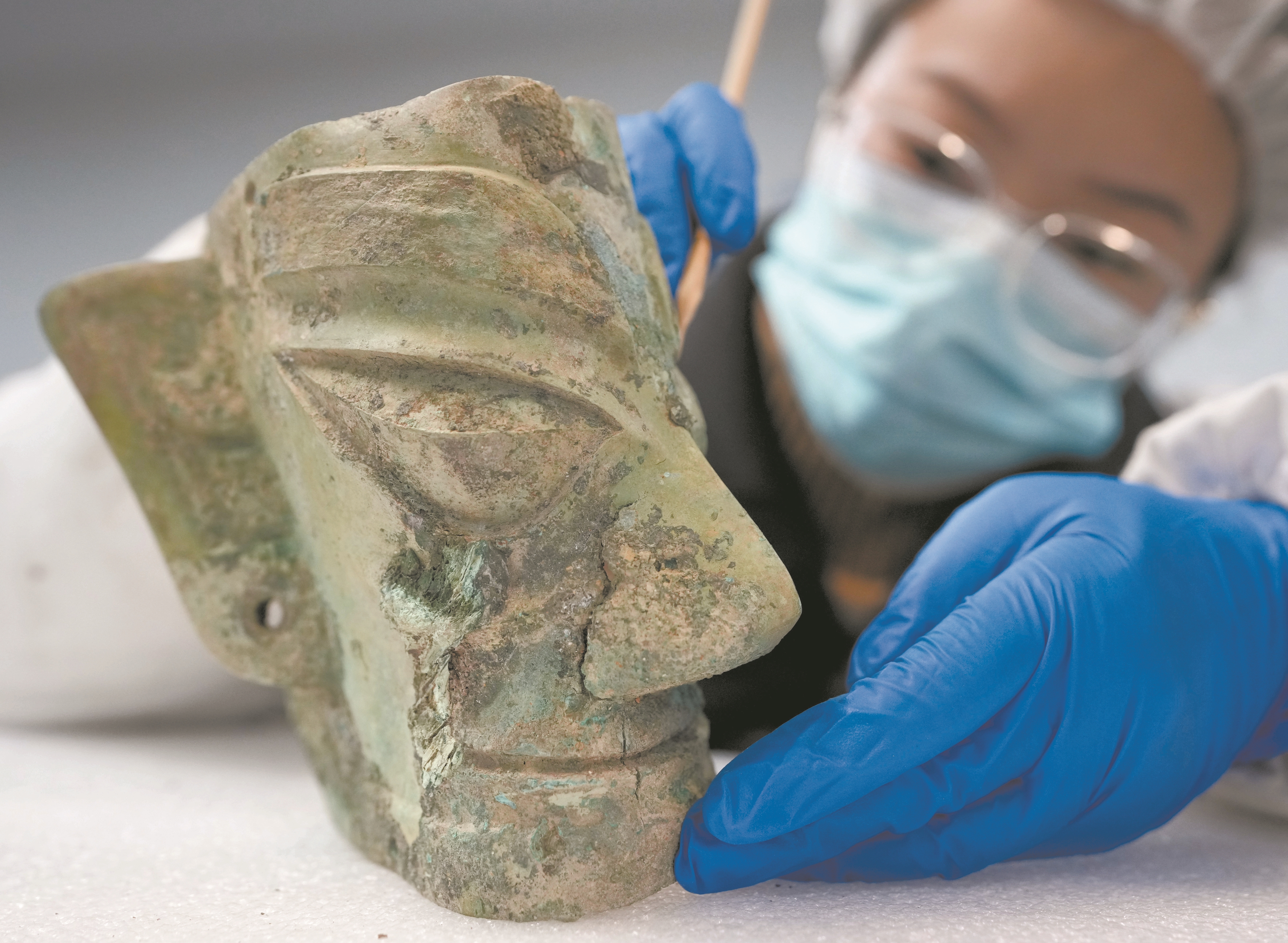 在国家文物局的支持和指导下,众多文物保护修复工作者投身三星堆文物的保护修复工作,修复了大量文物。为了让公众更直观地了解文物修复工作,三星堆博物馆新馆特别设置了文物保护和修复中心。在这里,普通观众可以隔着玻璃观看修复师的日常工作。打小在三星堆遗址旁长大,从事文物修复工作近40年的“大国工匠”、三星堆博物馆陈列保管部副部长郭汉中依旧带领徒弟忙碌在文物修复工作一线。郭汉中深度参与了三星堆目前已发现的全部8个祭祀坑的发掘工作,累计修复文物6000余件。在众多文物修复工作者的努力下,这些出土时叠压变形、受到侵蚀的国宝在修复后能够以良好的状态示人,不但让观众大饱眼福,更为科研人员提供了翔实可靠的考古研究素材。