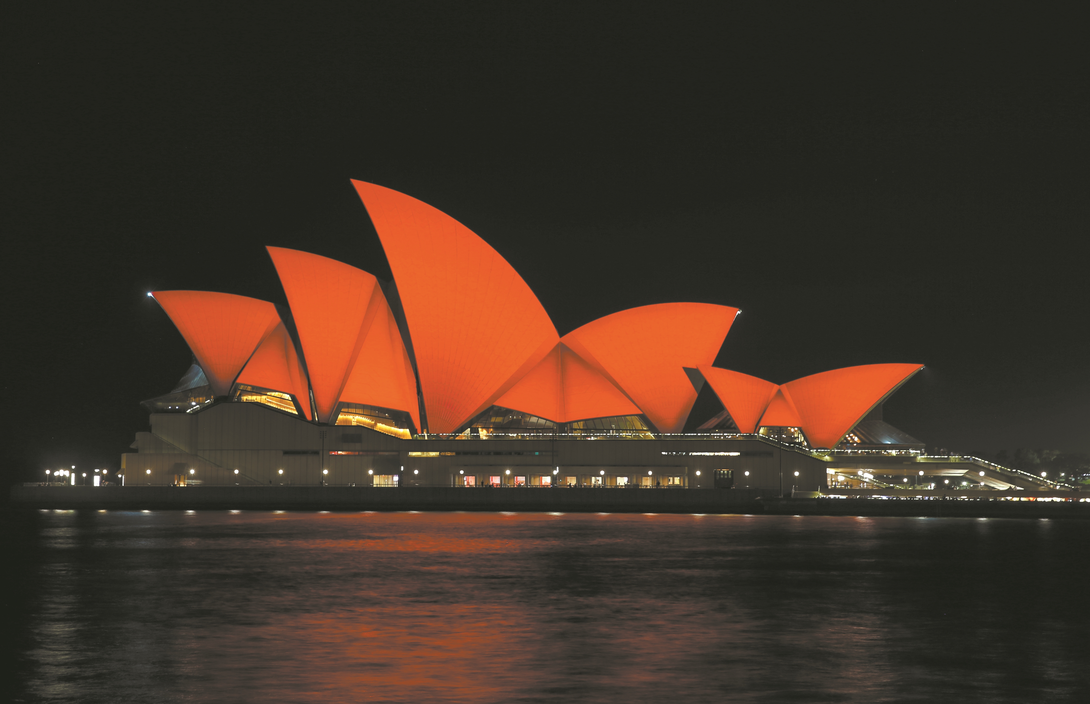 这是2月4日,澳大利亚悉尼歌剧院点亮“中国红”,庆祝中国农历新年。 新华社记者 马 平摄