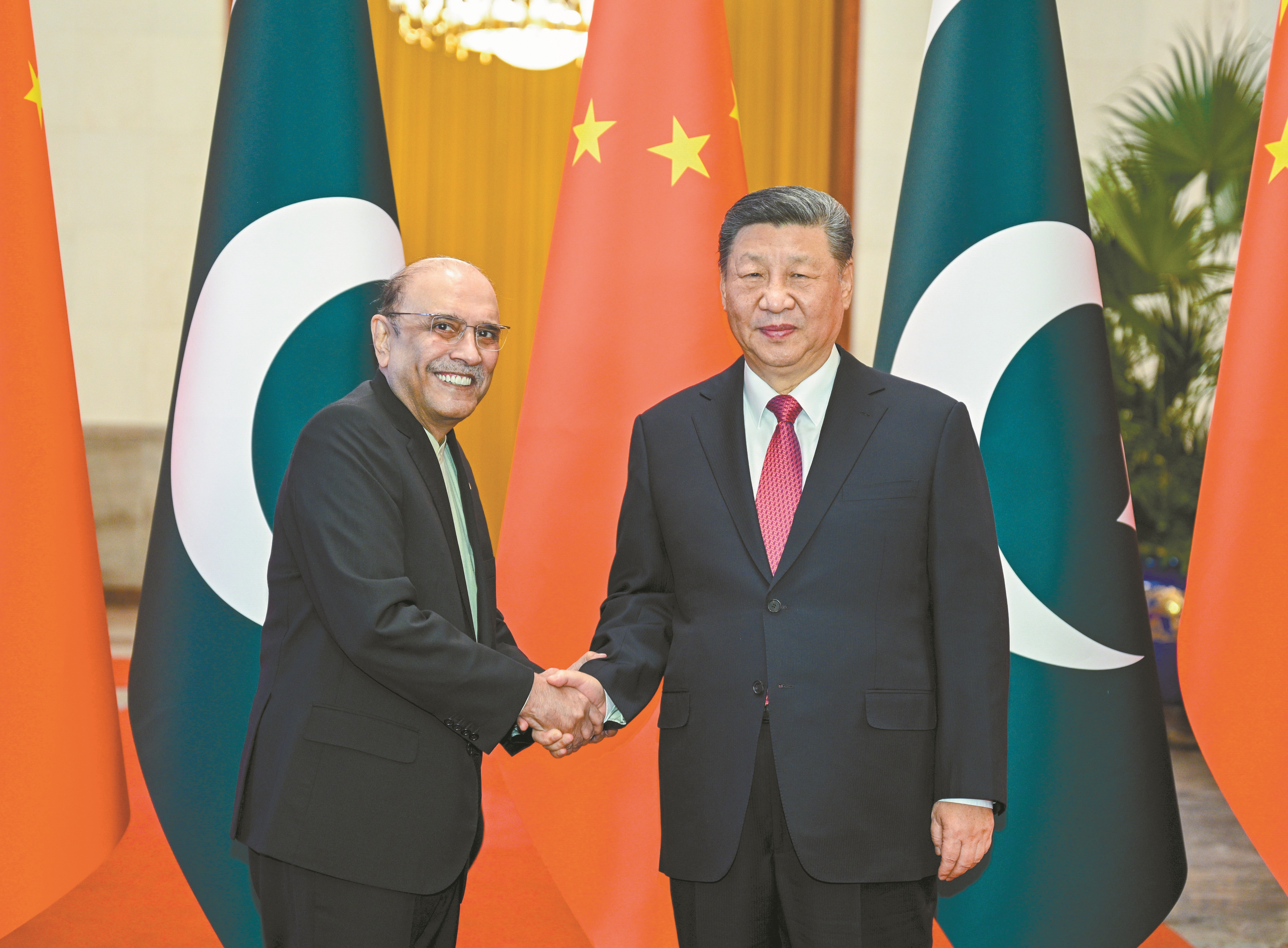 扎尔达里表示,巴基斯坦和中国是亲密邻邦,更是全天候的好朋友、好伙伴。巴中友谊历经风雨,两国人民的心始终紧紧相连。无论形势如何变化,巴方都将毫不动摇同中方站在一起。巴方感谢中方为巴经济社会发展提供无私帮助,愿学习中国成功经验,推动中巴经济走廊和各领域合作高质量发展,助力巴基斯坦实现工业化和现代化。在习近平主席英明指引下,中国在国际事务中发挥越来越大的引领作用,日益成为维护世界和平、稳定、繁荣的重要力量。巴方愿同中方密切配合,坚持多边主义,维护自由贸易,促进两国和广大发展中国家的共同利益。
