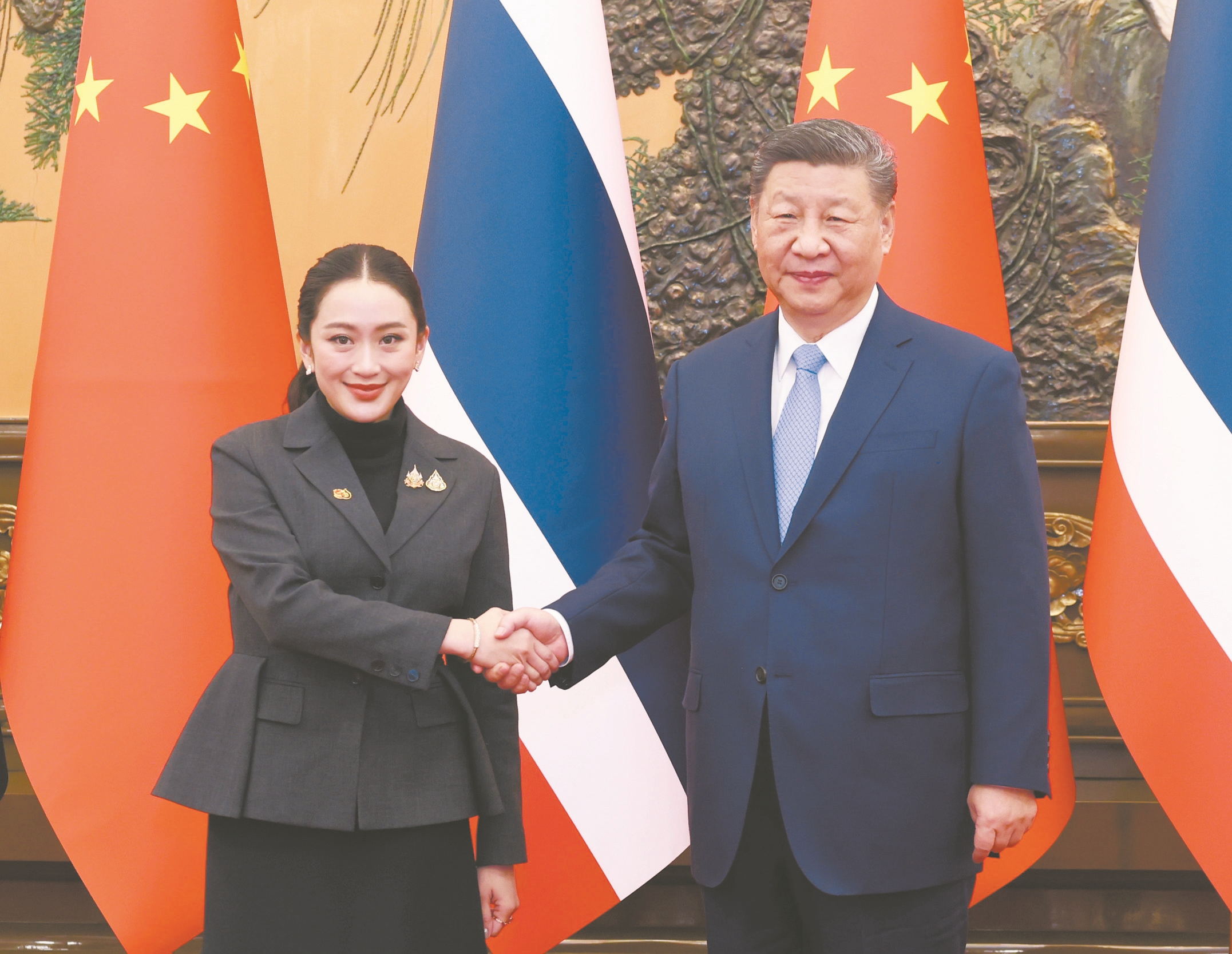 新华社北京2月6日电(记者董雪、邵艺博)2月6日上午,国家主席习近平在北京人民大会堂会见来华进行正式访问的泰国总理佩通坦。