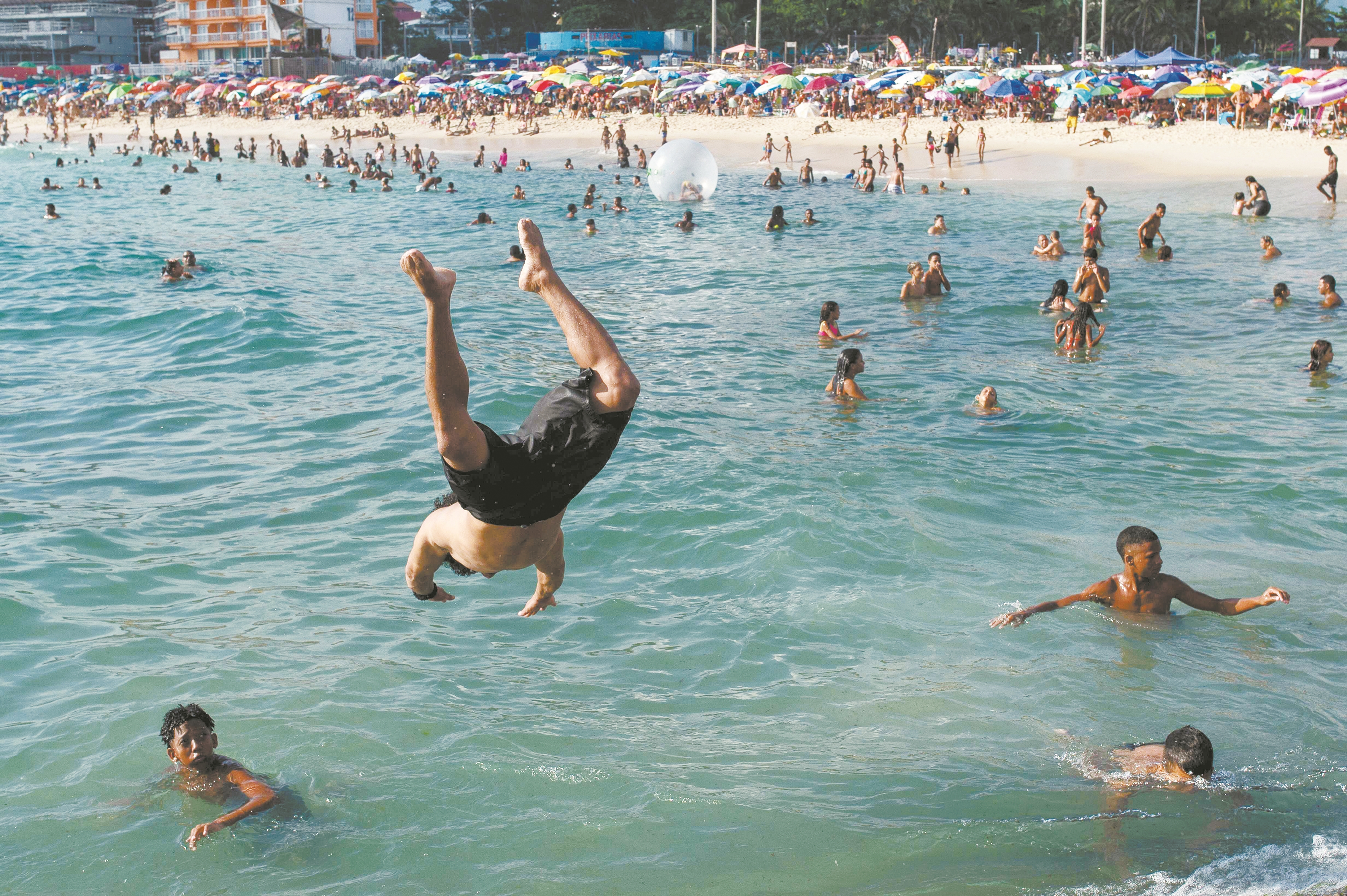 这是人们在巴西里约热内卢一处海滨戏水。