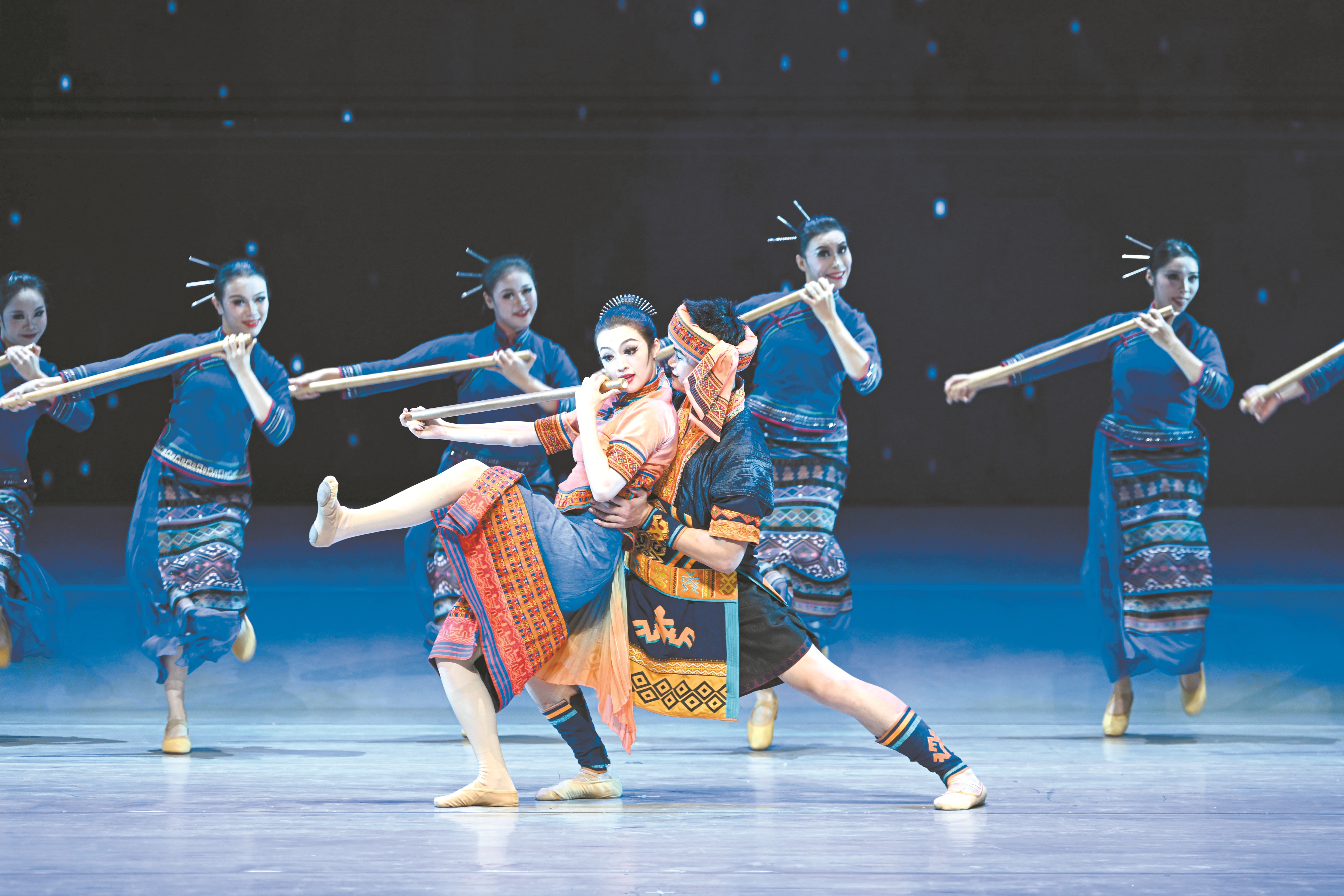 图为演员表演大型原创民族舞剧《甘工鸟》。(新华社发)