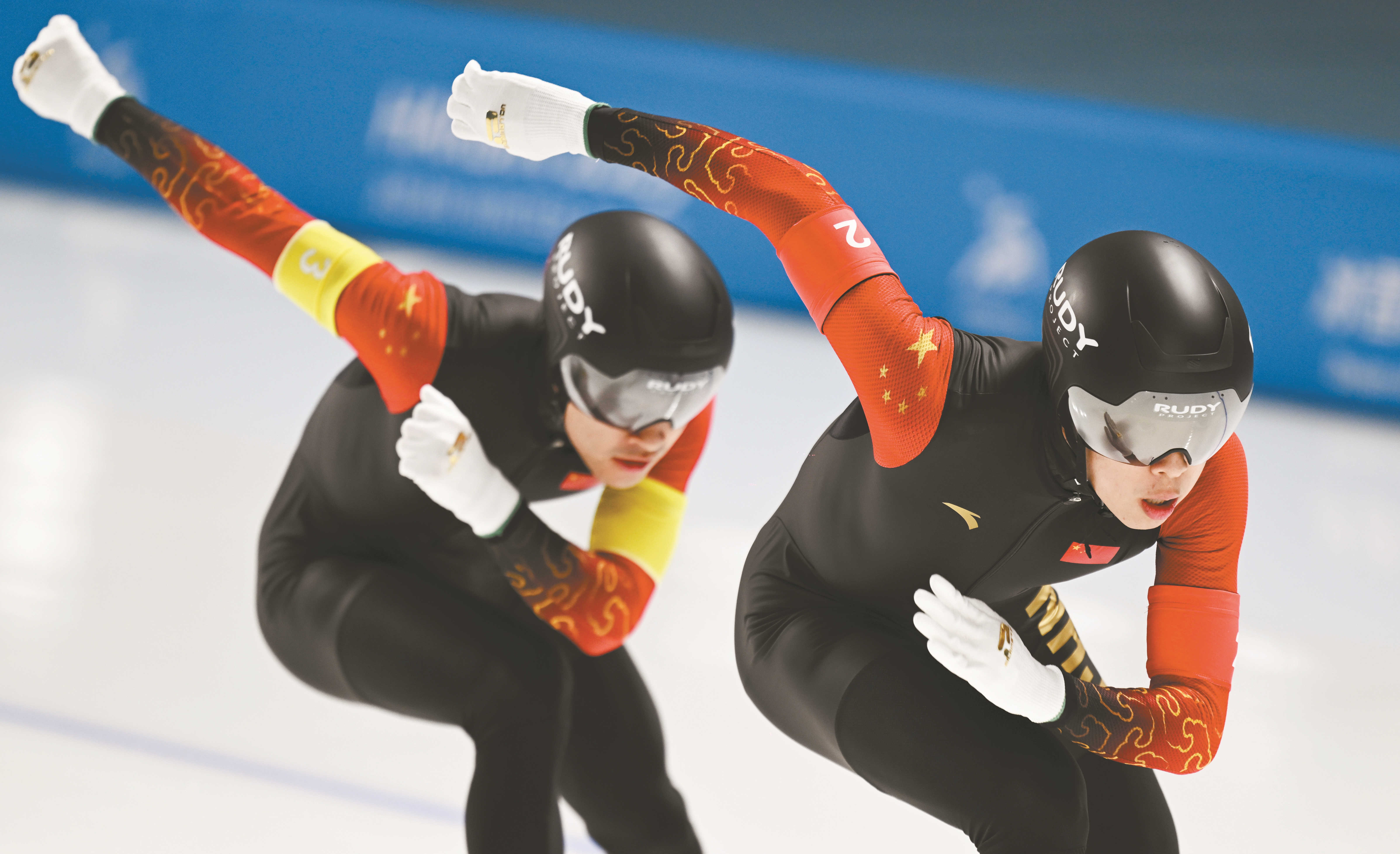 黑龙江省冰上训练中心速滑馆里,《义勇军进行曲》三度奏响。当日速度滑冰全部3枚金牌均被中国队收入囊中。高亭宇先以0.02秒的微弱优势力压日本选手森重航,夺得男子500米冠军;又与队友廉子文、宁忠岩合作,夺得男子短距离团体追逐金牌。女队则又一次让三面五星红旗同时升起,杨滨瑜、韩梅、太智恩分获女子3000米前三名。本届亚冬会有三金入账的高亭宇坦言不知道这会不会是自己最后一届亚冬会,“(这次)我的关键词是努力,相信大家一起努力,中国速度滑冰会越来越好”。