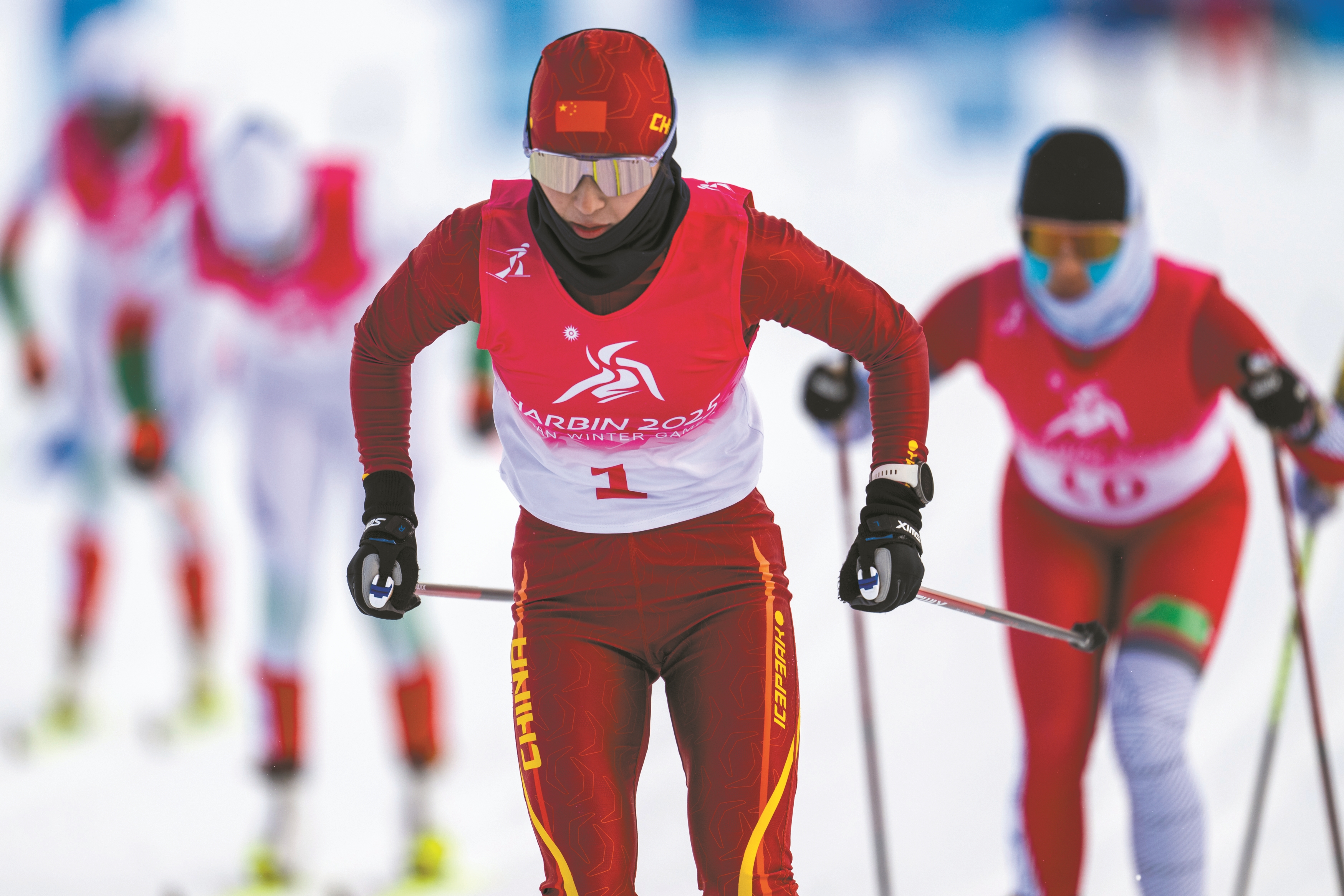 2月8日,在亚布力举行的第九届亚冬会越野滑雪女子个人短距离(传统技术)决赛中,中国选手李磊、孟红莲、陈玲双包揽冠、亚、季军。