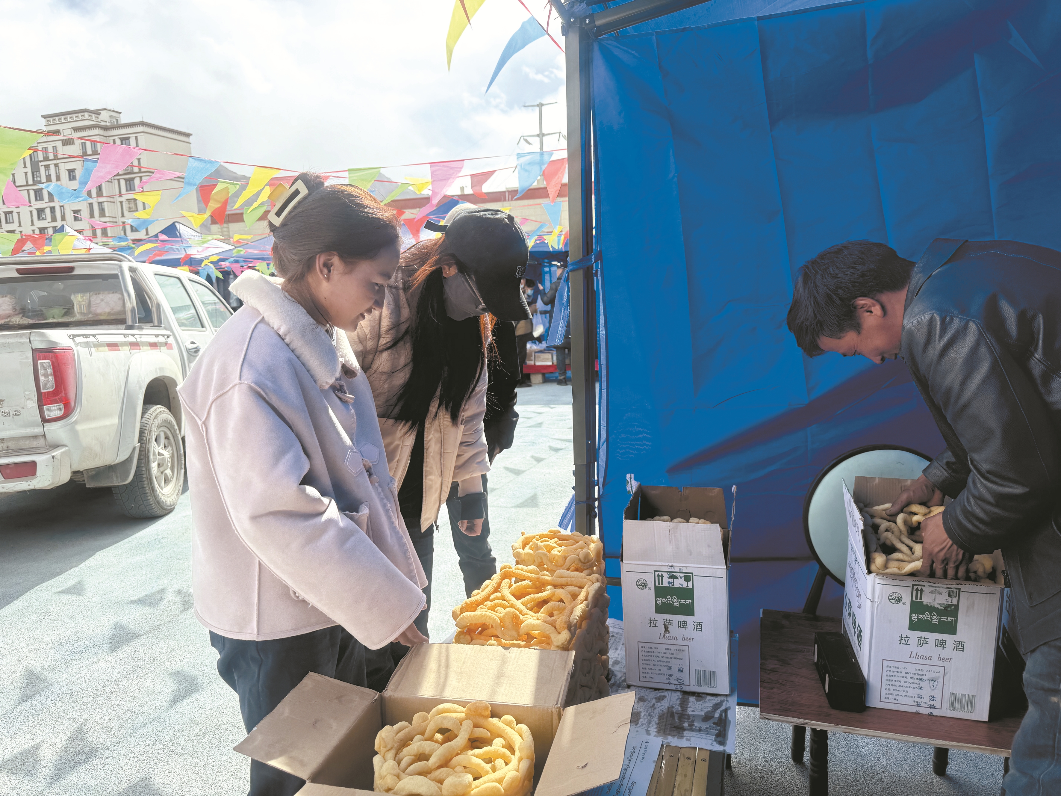 大家穿梭在各个摊位之间,精心挑选着心仪的年货。正在挑选藏式门帘的市民央宗脸上洋溢着幸福的笑容,她说:“去市里采购年货不太方便,现在在家门口就能买到各种各样的年货,感觉很方便,又充满了年味儿。”现场热闹非凡,吆喝声、欢笑声交织在一起,构成了一幅充满烟火气的新年画卷。