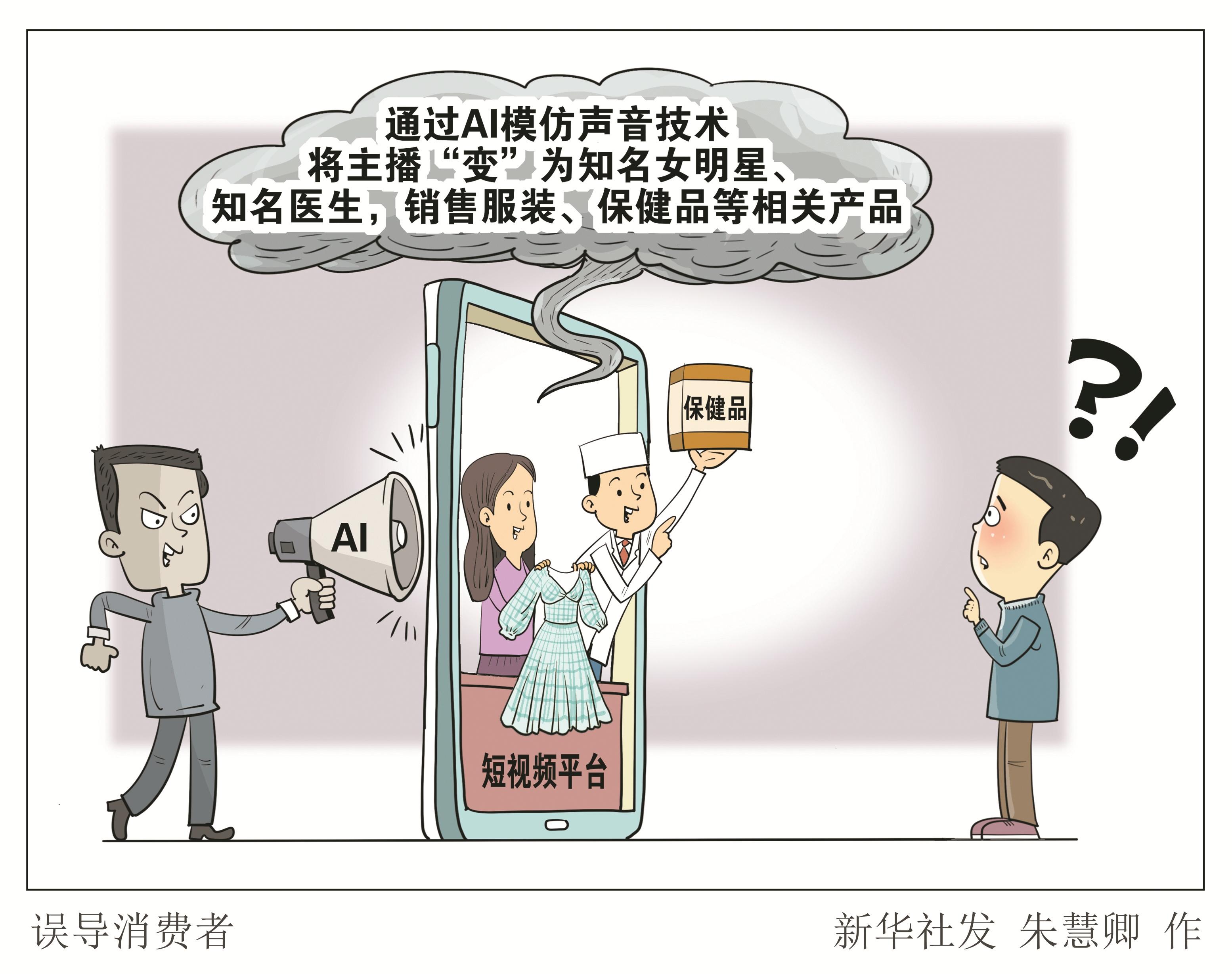 一些商家在短视频平台带货时,通过AI模仿声音技术将主播“变”为知名女明星、知名医生,销售服装、保健品等相关产品,对消费者造成了严重误导。国家传染病医学中心主任、复旦大学附属华山医院感染科主任张文宏接受媒体采访时表示,通过语音合成来模仿他的声音进行直播带货,这样的账号“不止一个,且一直在变”,他多次向平台投诉但屡禁不绝。
