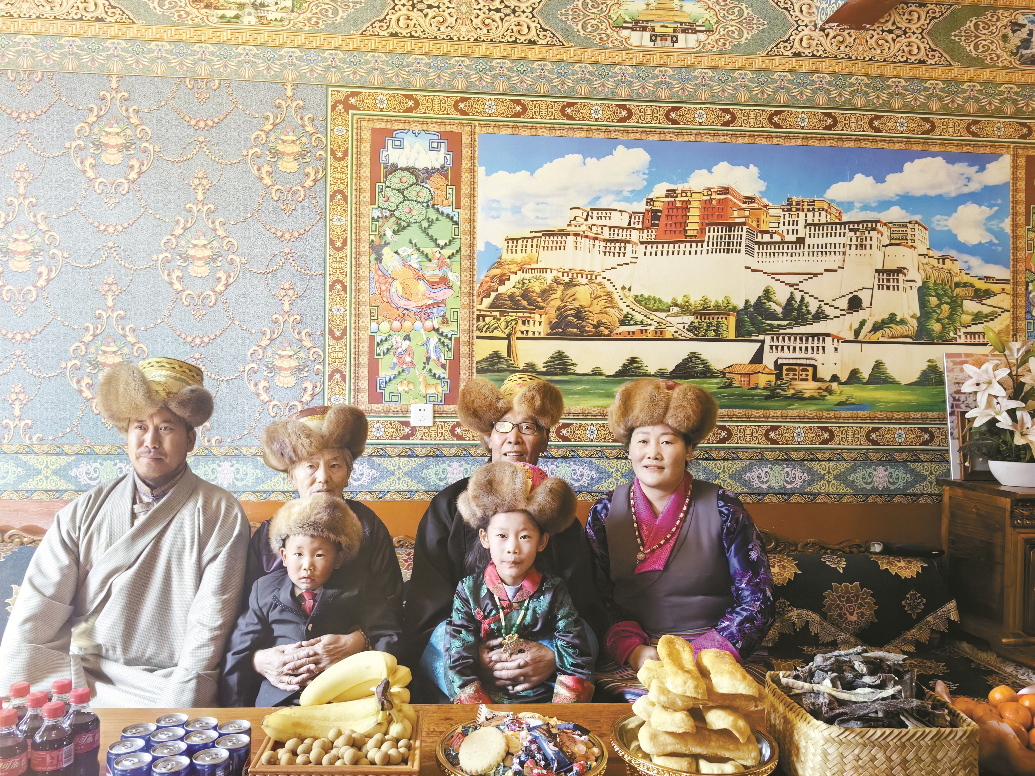 图为志愿者为群众拍摄的祖孙三代全家福照。 拉萨融媒记者 吴 敏摄