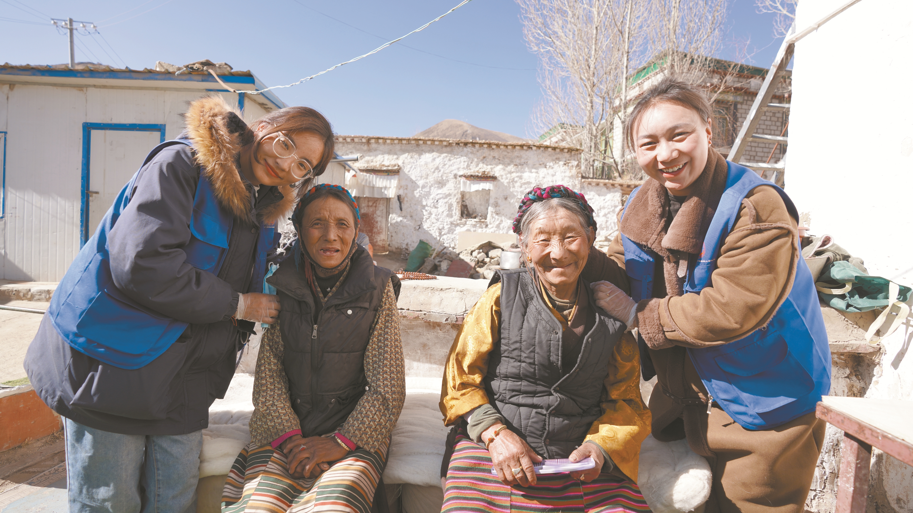 墨竹工卡县居家养老上门服务: 让老人足不出户乐享幸福晚年 拉萨融媒讯(记者莫瑞英通讯员次昂)藏历新年的脚步渐近,墨竹工卡县甲玛乡赤康村7组处处洋溢着温馨与喜悦。日前,西藏雅康养老服务有限公司的工作人员来到村里为这里的独居、空巢老人送去贴心的居家养老服务,让老人们在寒冬中真切感受到党和政府的关怀。 当天早上,在77岁老人普布次仁家中,工作人员一进门就帮助老人打扫卫生。只见他们动作娴熟,有条不紊,擦拭家具、清扫地面,每一个角落都不放过。普布次仁老人也没闲着,他郑重地从抽屉里拿出崭新的哈达,轻轻挂在擦拭干净的领袖像上,感慨万分:“感谢党和政府,我虽是独居老人,但每周二工作人员都如期来家里帮我洗衣、量血压。哪怕夜里我不舒服,他们也立马赶来带我去医院,就跟自己孩子一样。” 从普布次仁老人家中出来,工作人员又马不停蹄地赶到附近的独居老人索朗卓玛和仓觉姐妹家中。一进屋,工作人员先为两位老人测量血压,之后便坐在老人身边,耐心地陪她们唠家常。工作人员拉姆还细心地帮老人梳头,她告诉记者:“每周我们都会前往唐加乡、工卡镇、甲玛乡,为独居老人送去关怀。看到老人们脸上的笑容,我感到这份工作特别有意义,我以后一定会更加用心地服务好每一位老人,让他们的晚年生活更加温暖和幸福。” 索朗卓玛老人说:“多亏了党和政府无微不至地关怀,我们的生活才有保障,日子越过越舒心。也感谢工作人员不辞辛劳,定期上门探望,让我们真切感受到社会大家庭的温暖。” 西藏雅康养老服务有限公司工作人员巴桑介绍:“自居家上门服务开展以来,我们以‘十三助’为导向,重点围绕‘生命体征测量’‘助洁’‘助医’‘助行’等服务内容,充分考虑每位独居老人的特殊需求,制定个性化服务方案。截至目前,已为40余名独居老人开展1000余次服务,老人们的精神面貌、心理状态以及生活质量都得到显著改善,获得感和幸福感大幅提升。未来我们将继续秉持初心,积极响应号召,不断优化服务,为更多老人带去贴心关怀,助力居家养老政策在墨竹工卡县落地生根,让每一位老人都能安享幸福晚年。” 图为工作人员与老人们合影。(墨竹融媒供图)