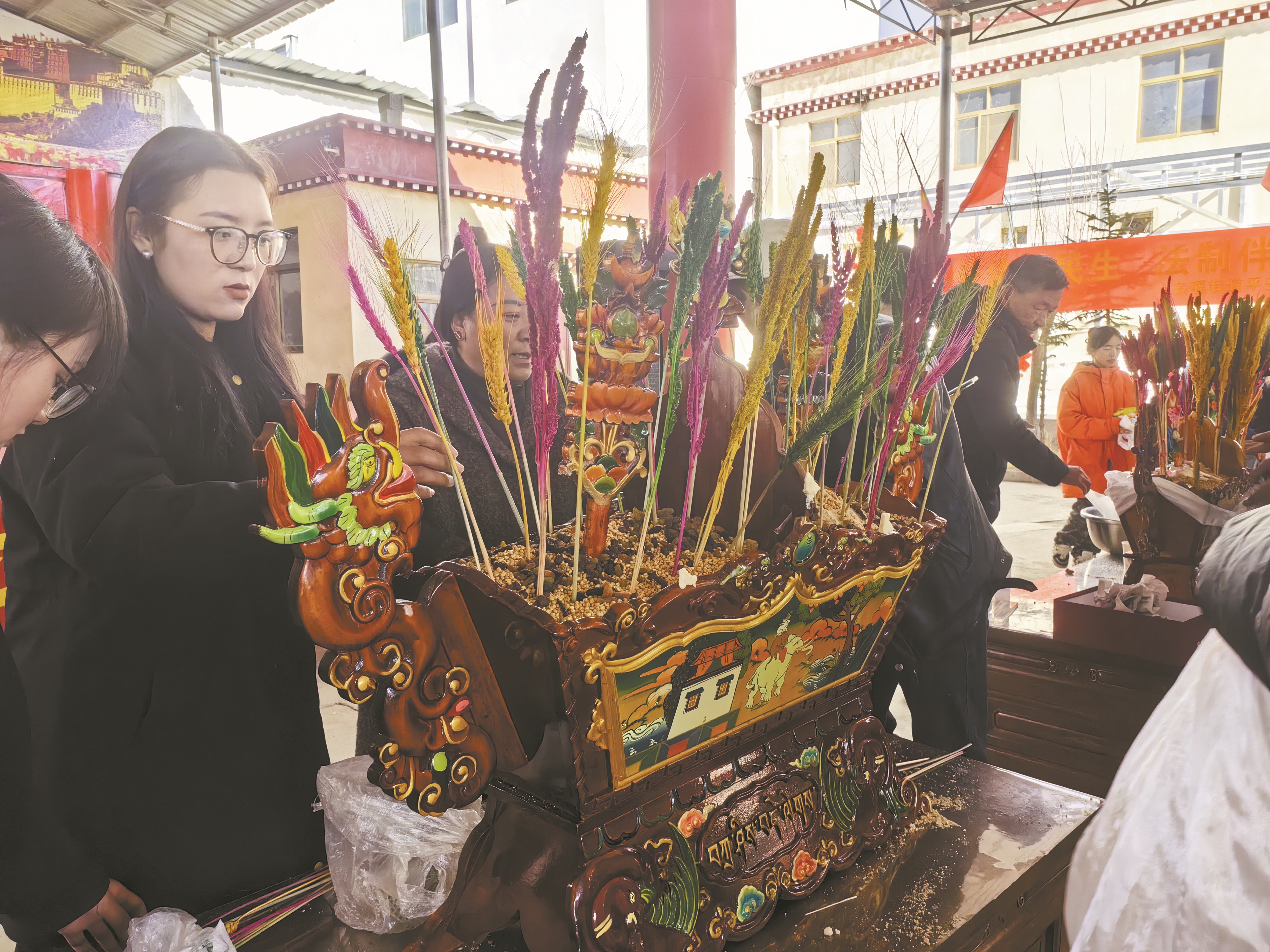 前来参加活动的群众阿米说:“举办这样的活动太好了,大家聚在一起热热闹闹,还能看到的‘切玛’制作过程,马上藏历新年了,回去我也要给家里做一个漂亮吉祥的‘切玛’。”