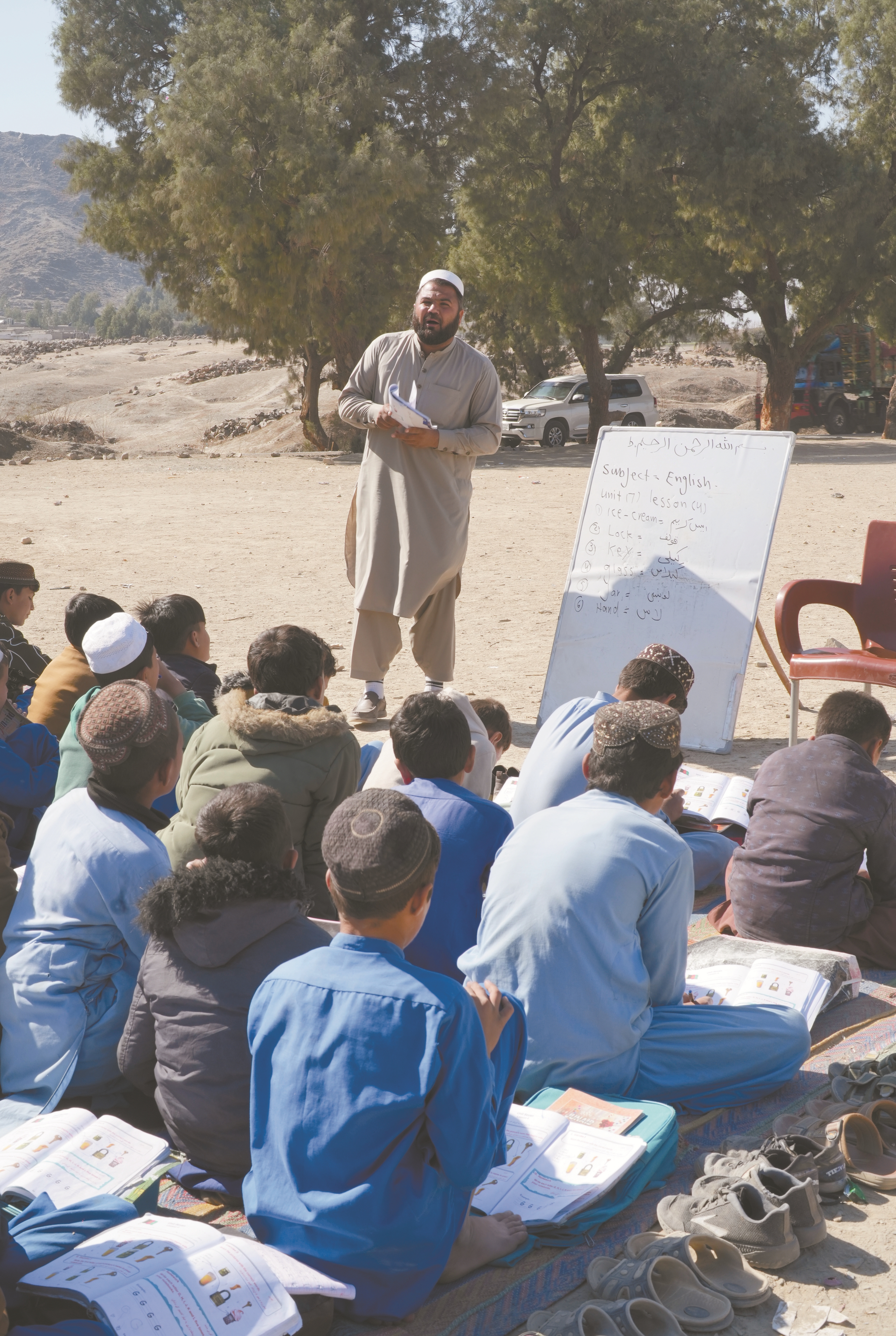 ?这是2月12日,孩子们在阿富汗东部楠格哈尔省贾拉拉巴德一处露天学校上英语课。