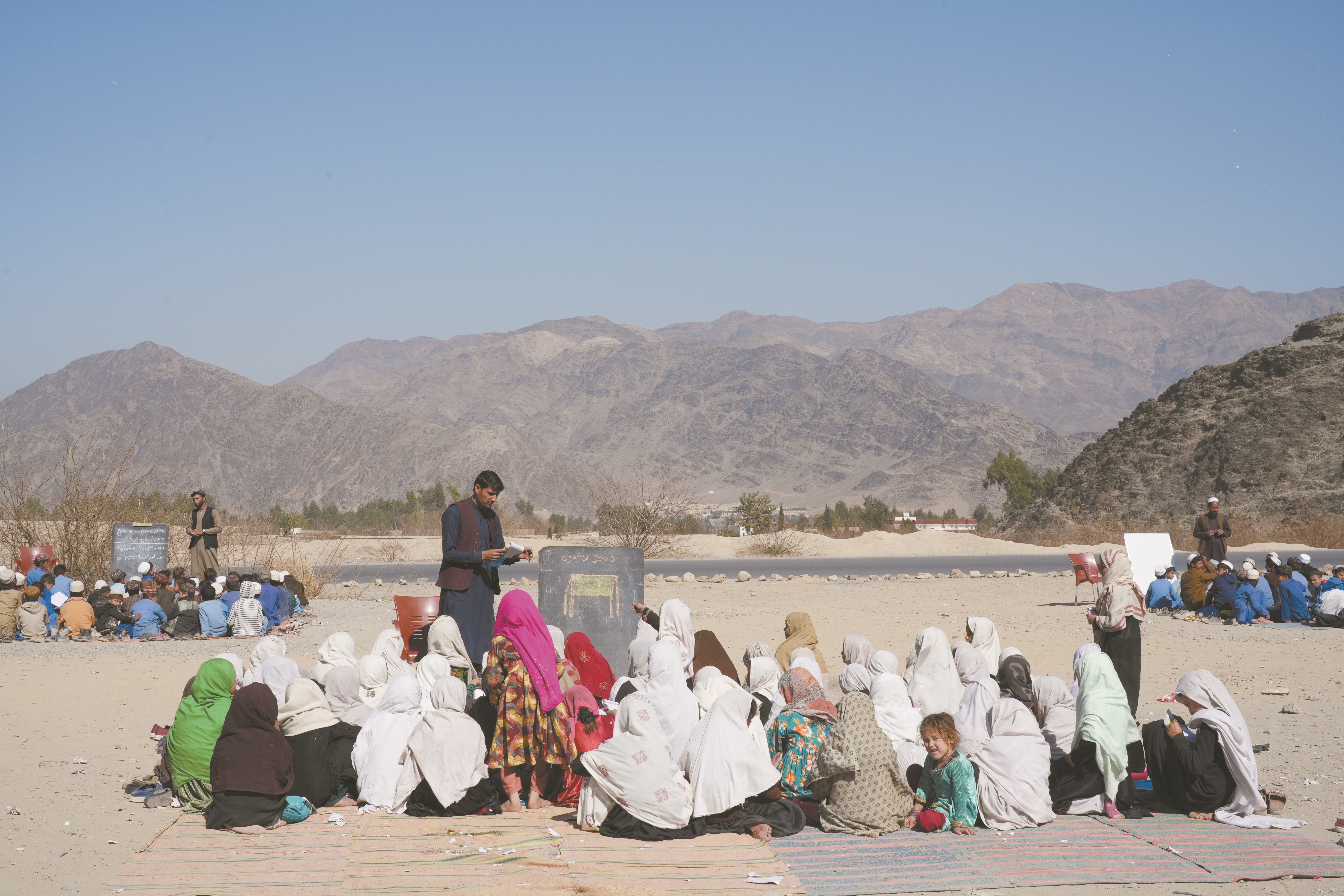 阿富汗连续40多年的战乱环境,让很多学龄儿童失去了基本的学习条件。近日,在阿富汗东部边境省份楠格哈尔贾拉拉巴德的一条公路边,数百名孩子席地而坐,在没有校舍和桌椅的露天学校上课。