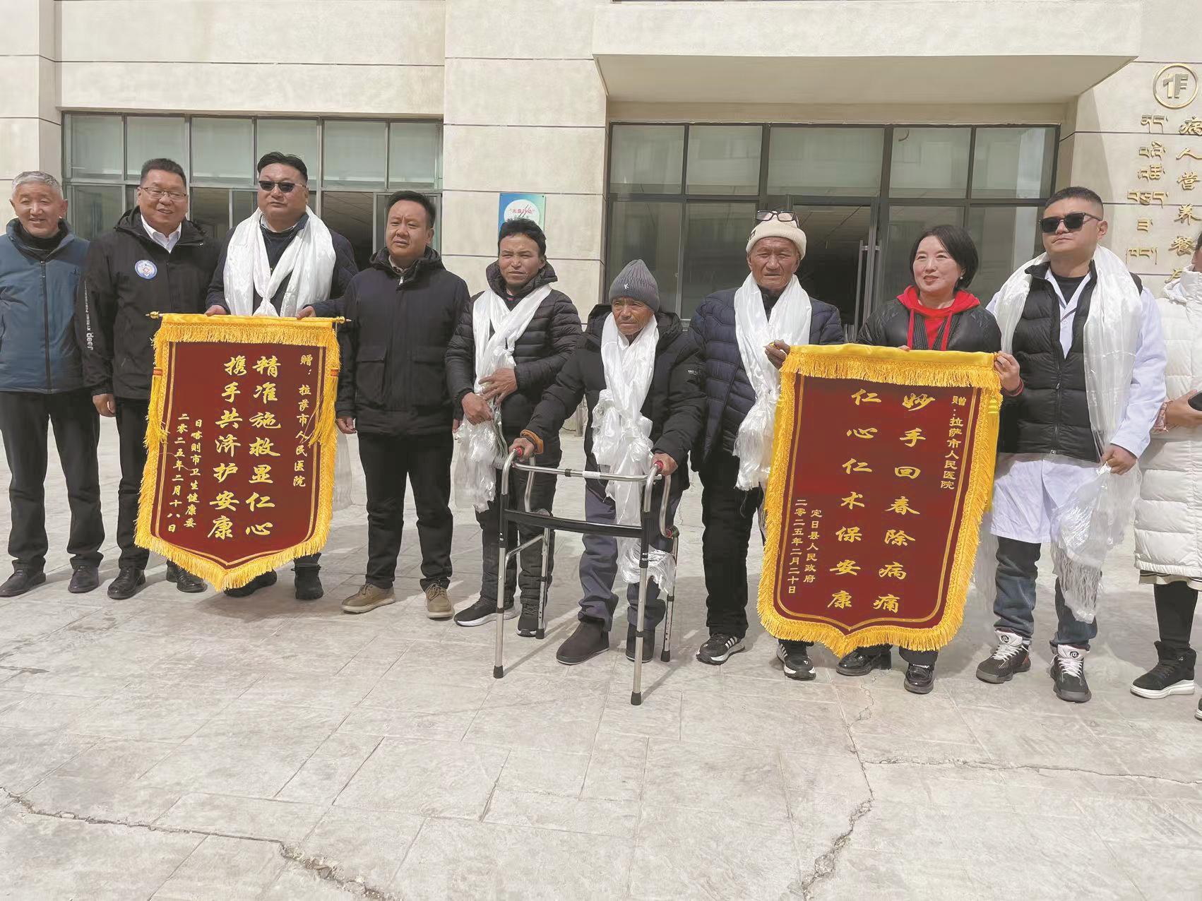 2月19日,日喀则市卫健委、定日县人民政府和日喀则市医院给拉萨市人民医院赠送锦旗。 拉萨融媒记者 齐永昌摄