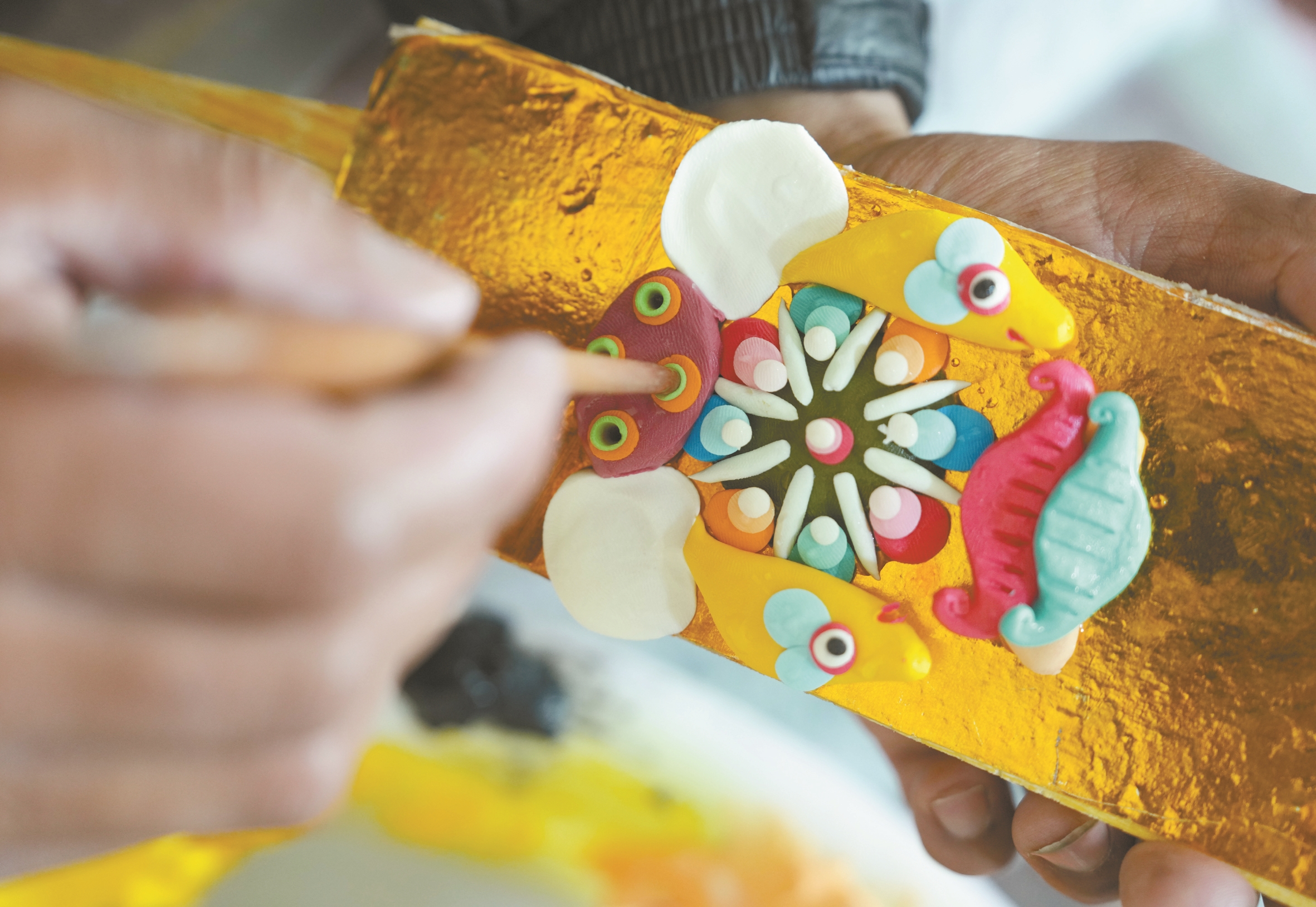 ▲这是在拉萨市老城区,手工艺人在制作酥油花(2月25日摄)。 新华社记者 晋美多吉摄