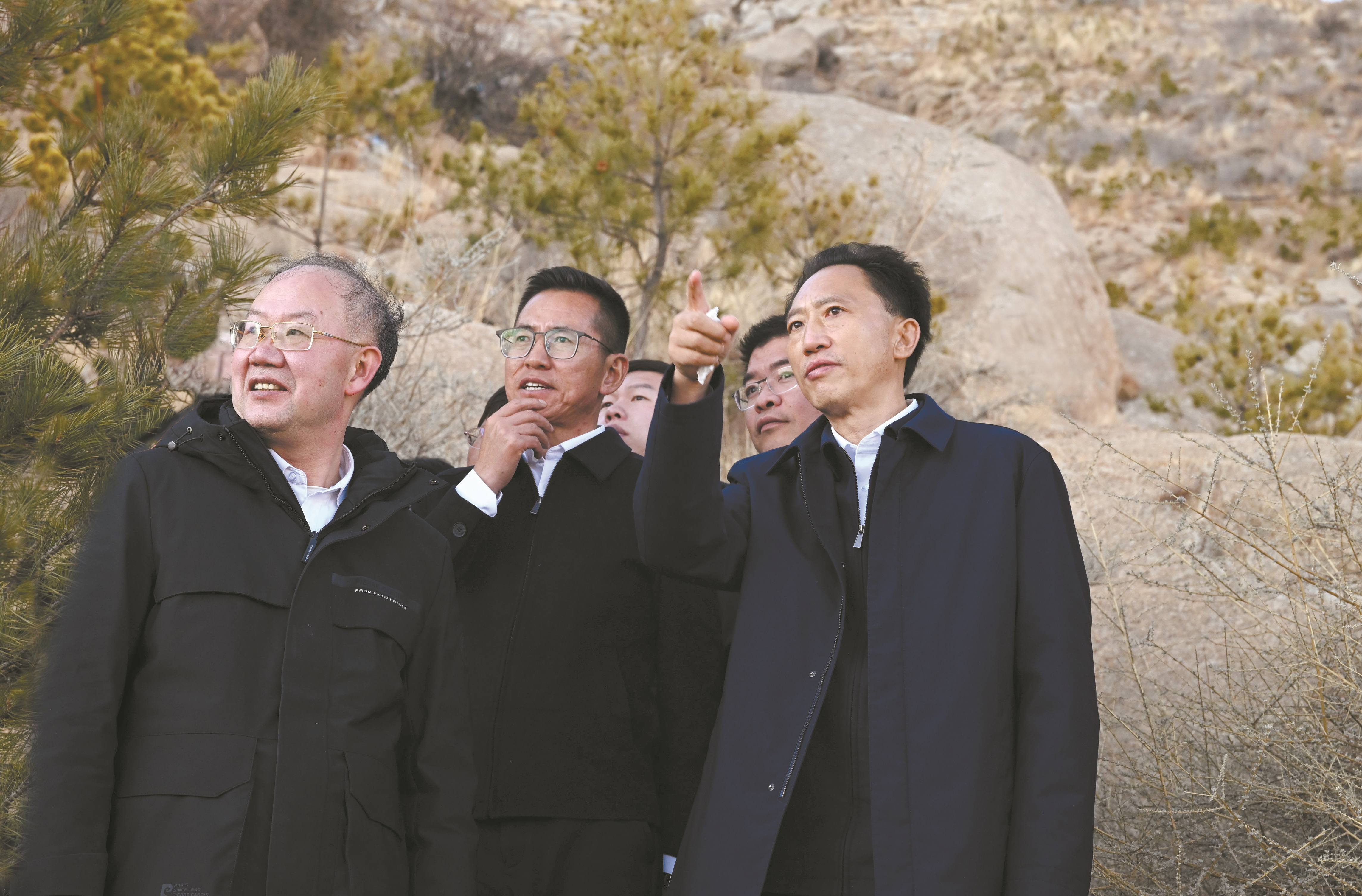 2月26日下午,自治区党委常委、拉萨市委书记肖友才来到南北山绿化工程北山造林片区,调研督导安全生产、造林绿化、景区规划等工作。这是肖友才在南北山绿化工程北山造林片区详细了解苗木生长和日常管护情况。 拉萨融媒记者 巴桑次仁摄