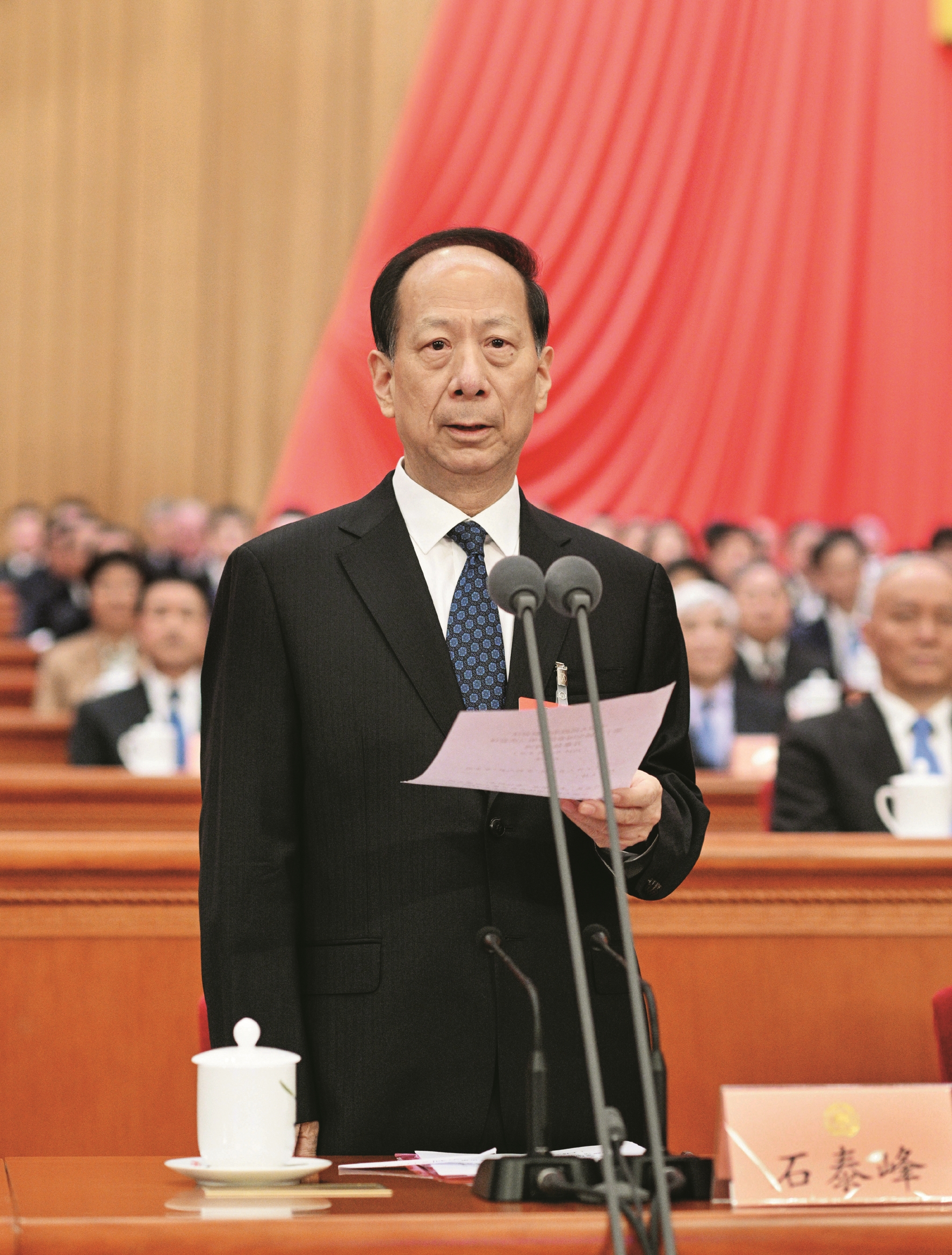下午3时,石泰峰宣布大会开幕,全体起立,高唱中华人民共和国国歌。