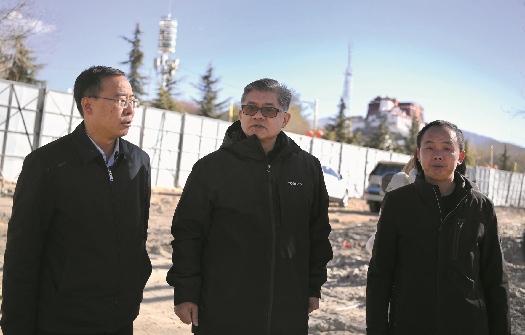 3月16日,市委副书记、市长王强实地调研推进药王山环境整治工程相关工作。图为王强详细了解工程进度以及存在的难点堵点问题。 拉萨融媒记者 多吉吉布摄