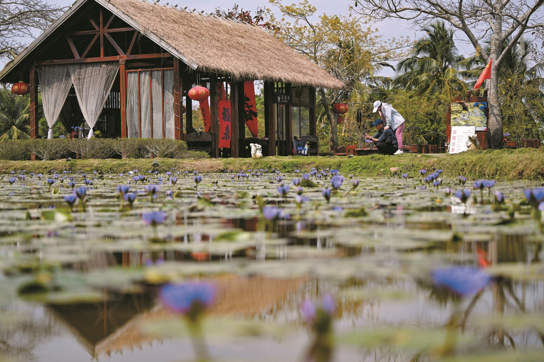 3月20日,游客在琼海博鳌留客村游玩。
