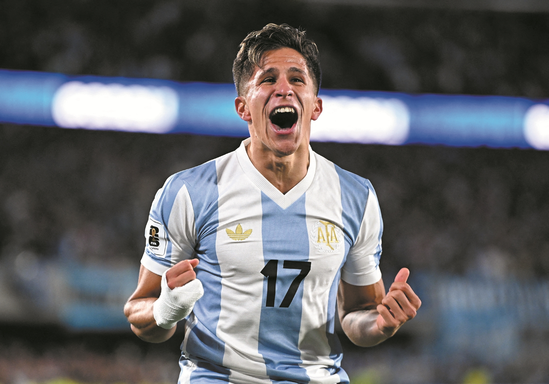3月25日,在阿根廷首都布宜诺斯艾利斯举行的2026美加墨世界杯南美区预选赛中,阿根廷队4比1战胜巴西队。由于乌拉圭战平玻利维亚,阿根廷队凭借积分优势提前晋级世界杯。