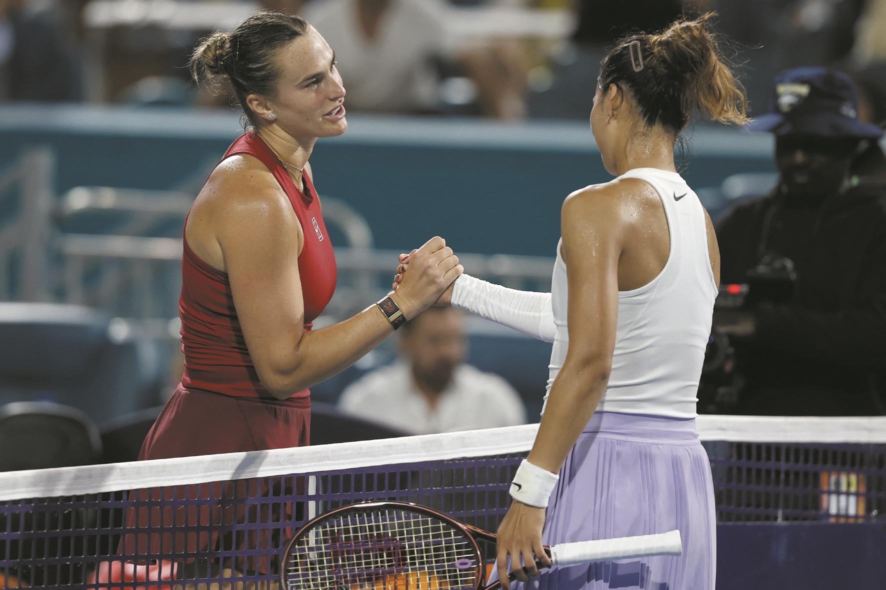 郑钦文不敌萨巴伦卡 止步WTA1000迈阿密站女单八强
