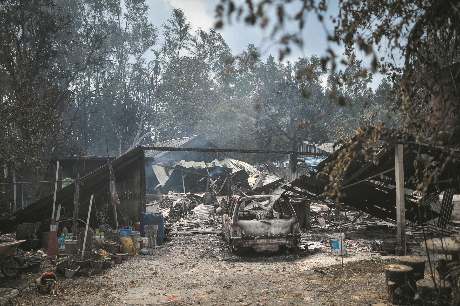 这是4月1日在马来西亚雪兰莪州蒲种地区拍摄的在燃气管道爆炸事故中损毁的车辆及房屋。
