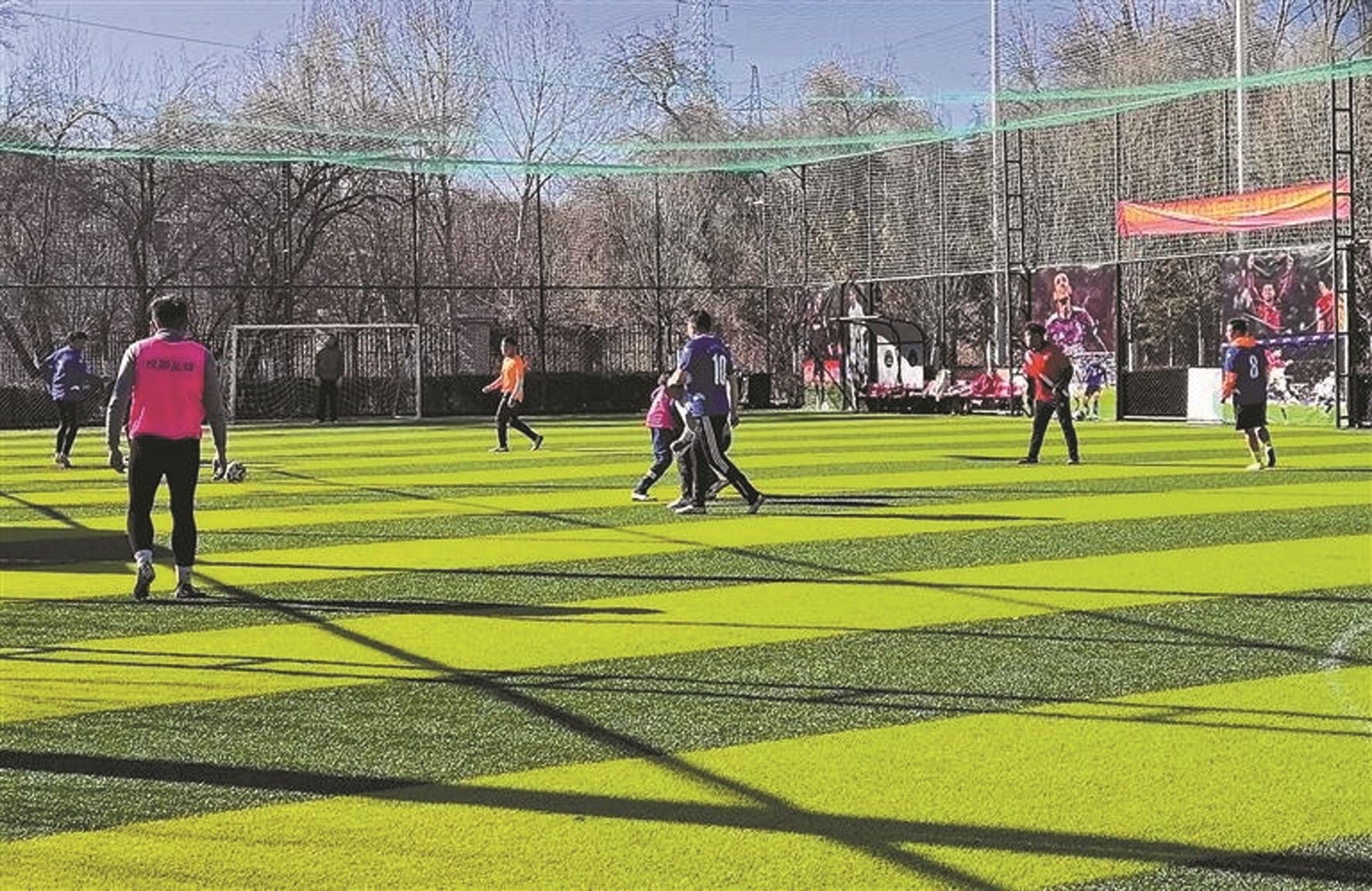 图①为市民在拉萨市曲米路湿地公园踢足球。