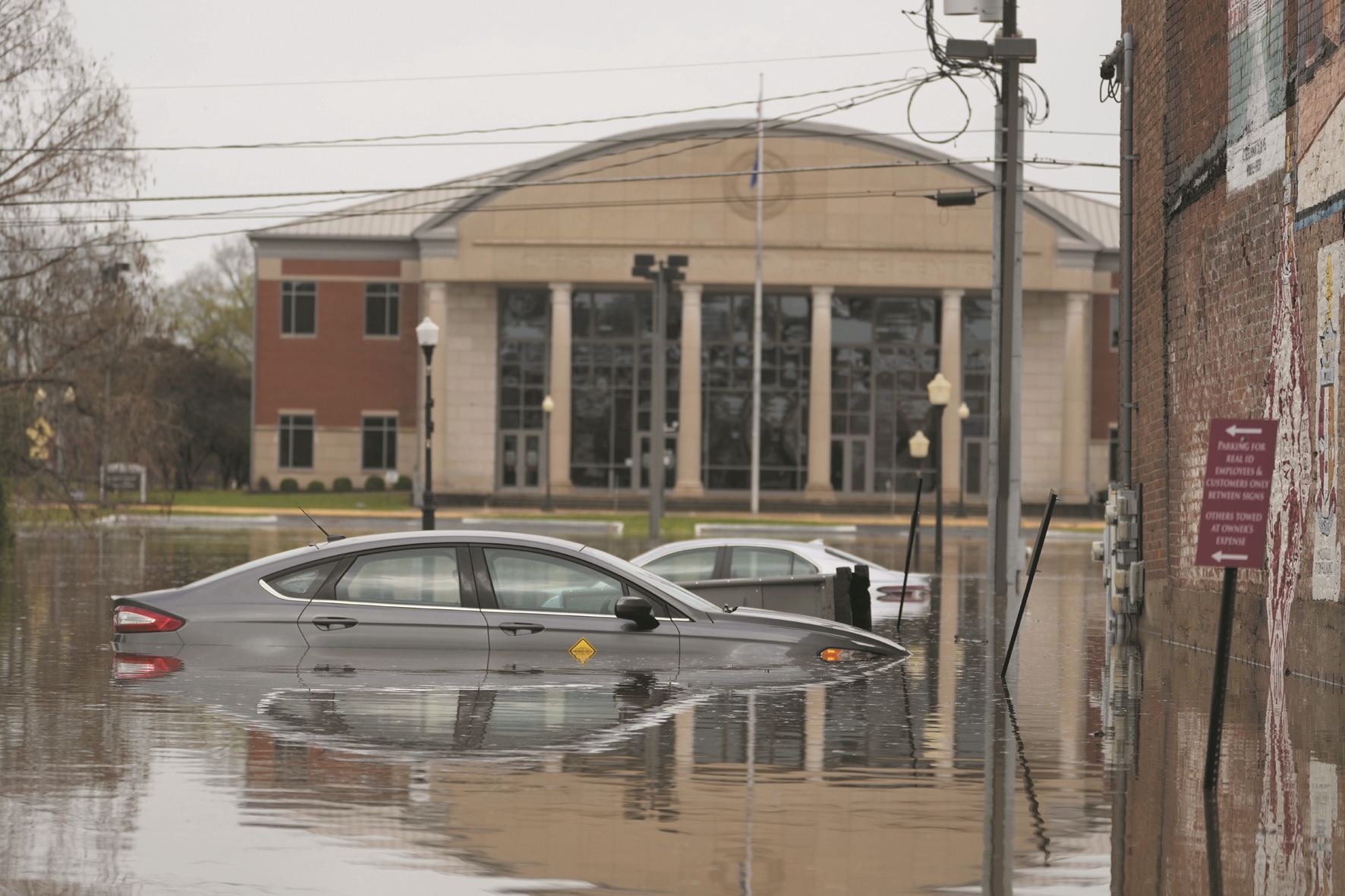 这是4月4日在美国肯塔基州霍普金斯维尔拍摄的泡水的车辆。