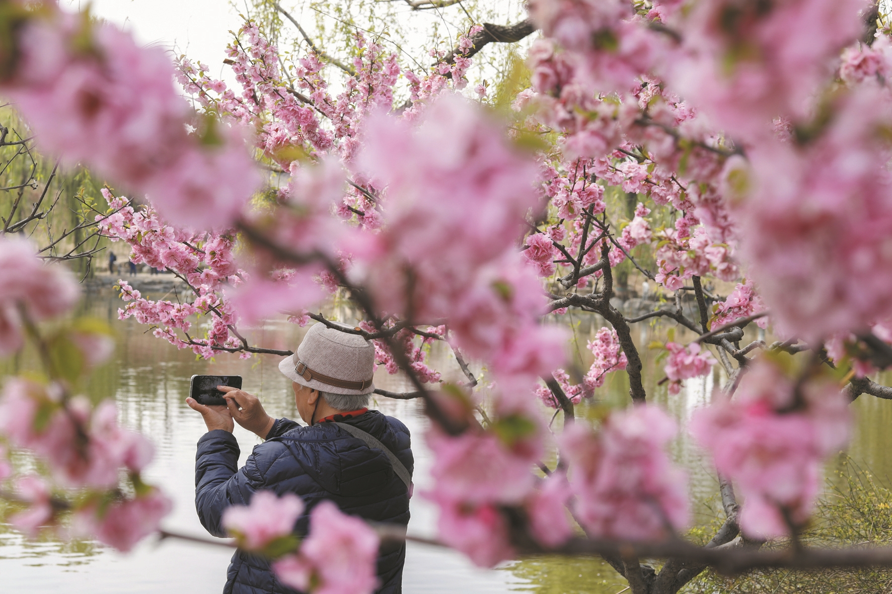 清明假期踏青赏花 清明假期,人们来到户外踏青、赏花,感受美好春光。 图为4月4日,游客在北京圆明园遗址公园拍照。 (新华社发)