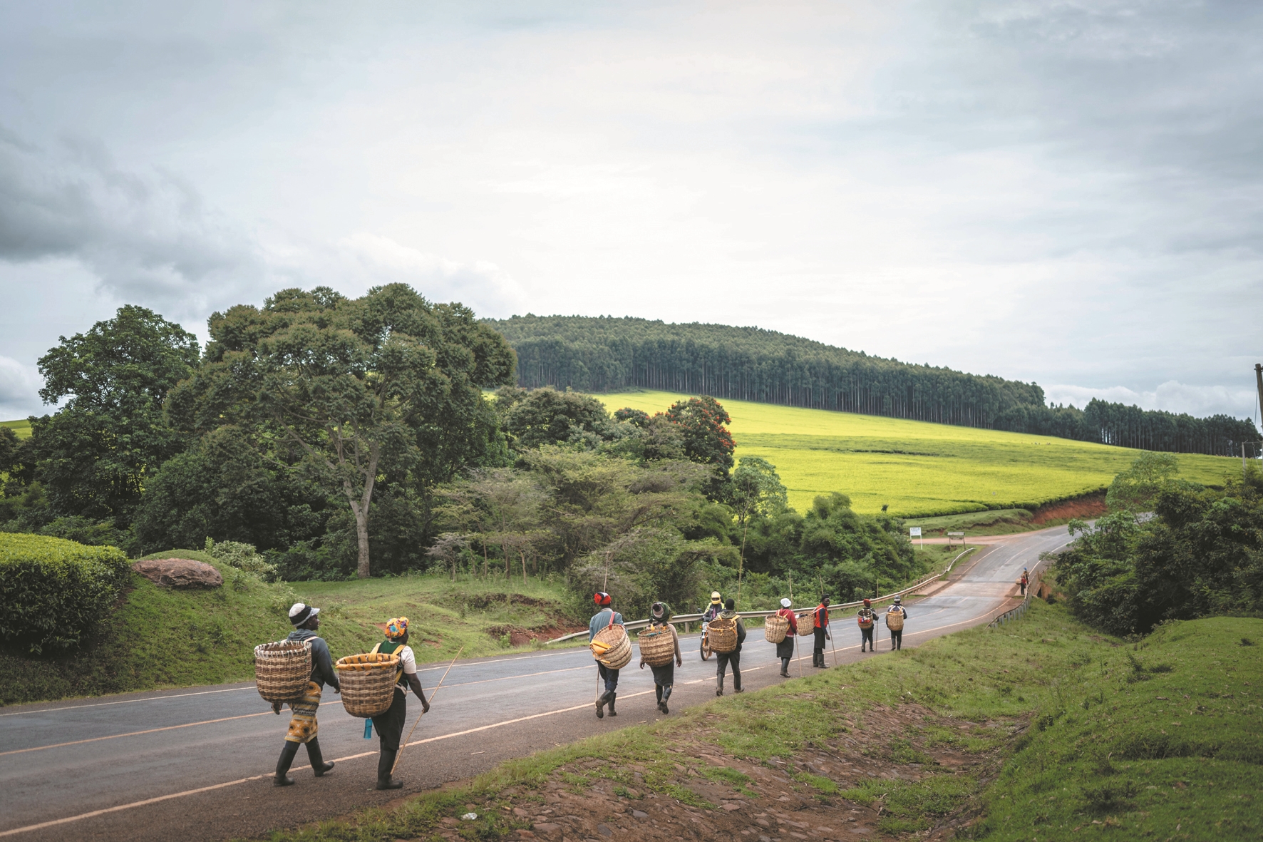 图为4月5日,农民走向肯尼亚凯里乔的茶田采茶。