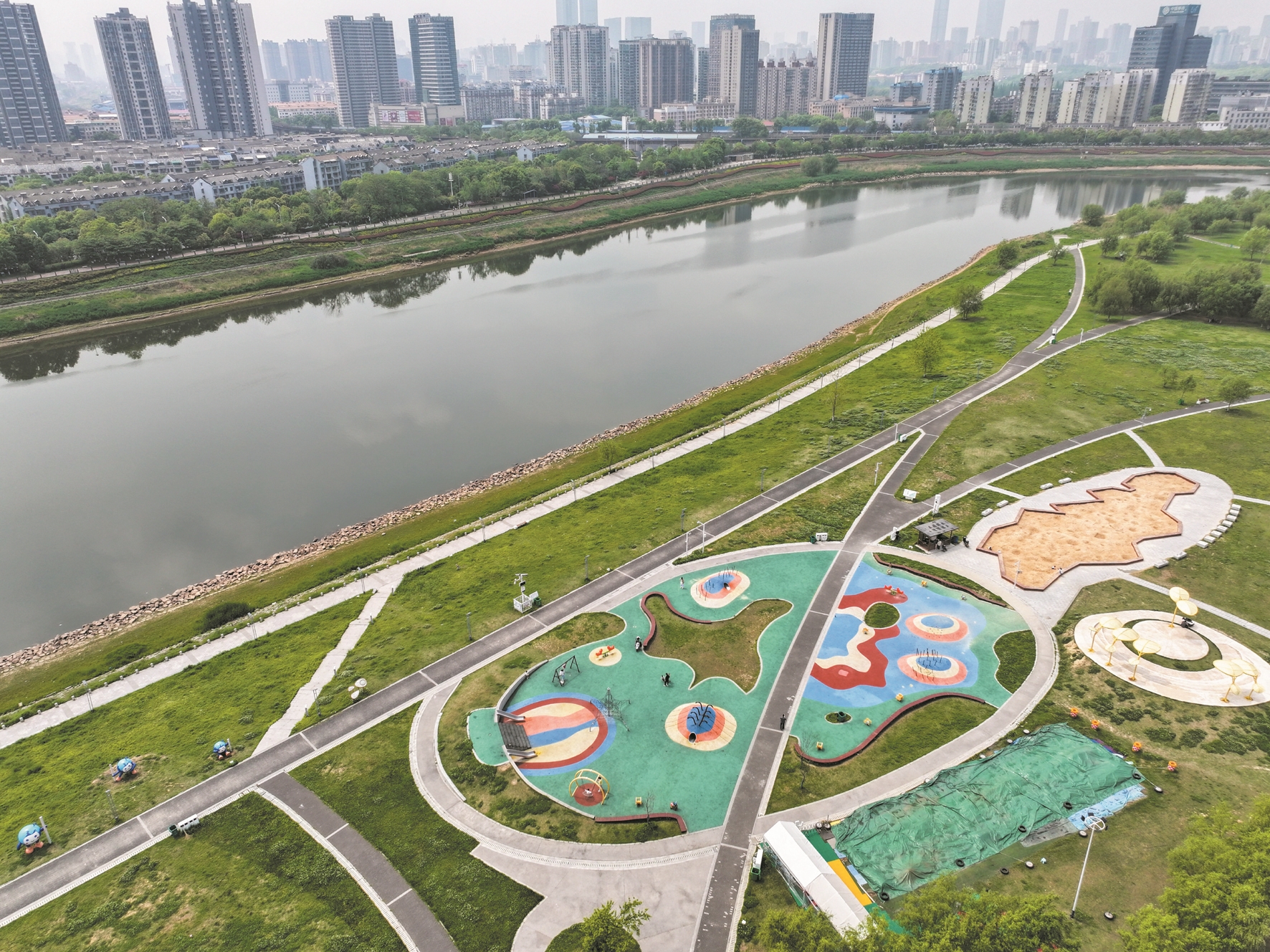 这是4月10日拍摄的长沙市开福区马栏山片区的鸭嘴公园一角(无人机照片)。 新华社记者 陈泽国摄